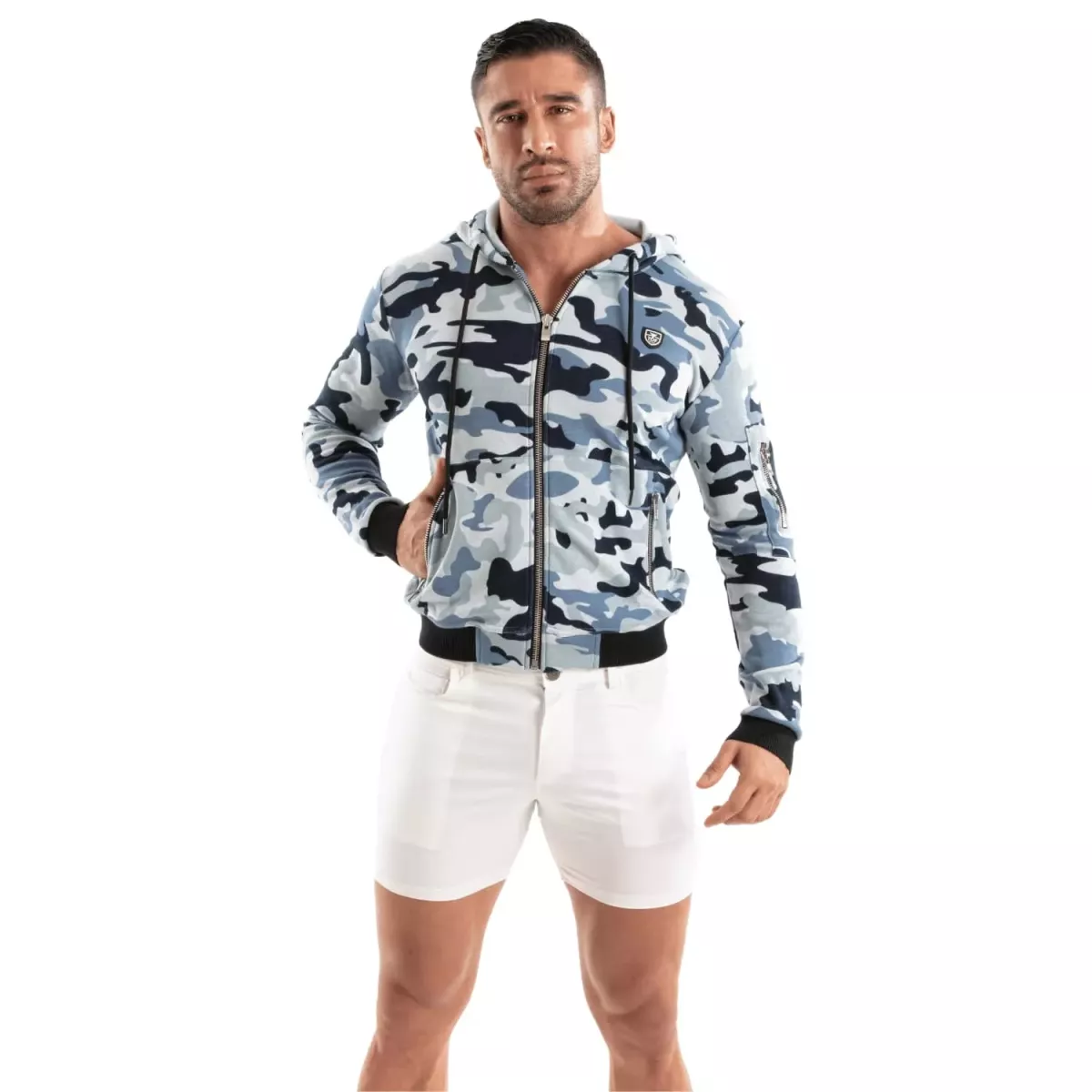 "The TOF Paris men's hoodie strikes the perfect balance between style and comfort. The camouflage pattern, premium finishes, and warm fleece fabric make it a must-have for mid-season. Pair it with the Temptation Microfiber White Boxer or the Temptation Microfiber Red Bikini for a bold, sexy look."