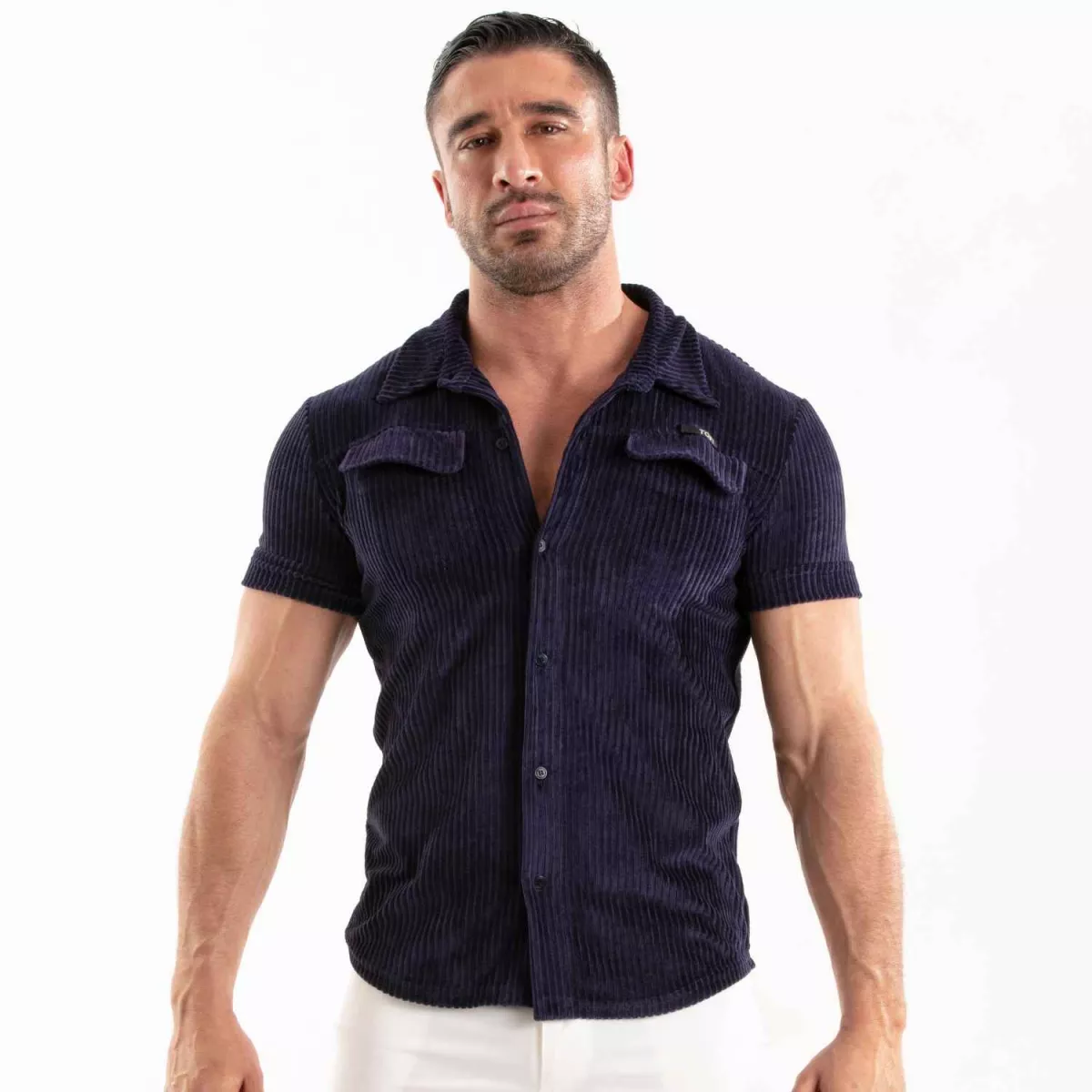 Embrace the elegance of corduroy with the TOF Paris men's corduroy shirt. Perfect for an exclusive style, this short-sleeved shirt combines comfort and fashion. Available in black, navy blue, sand, and camel, it pairs effortlessly with men's pants or sexy men's shorts.