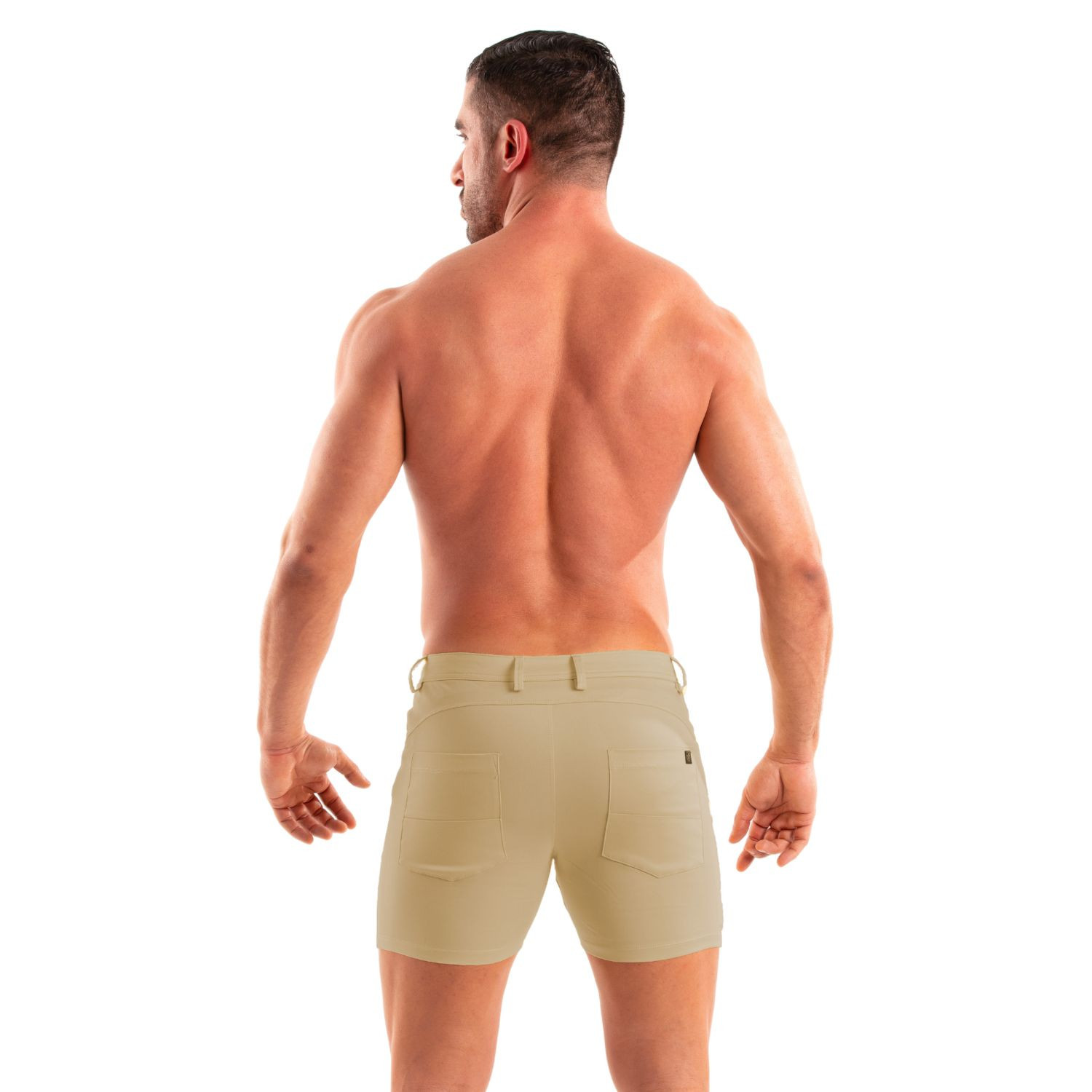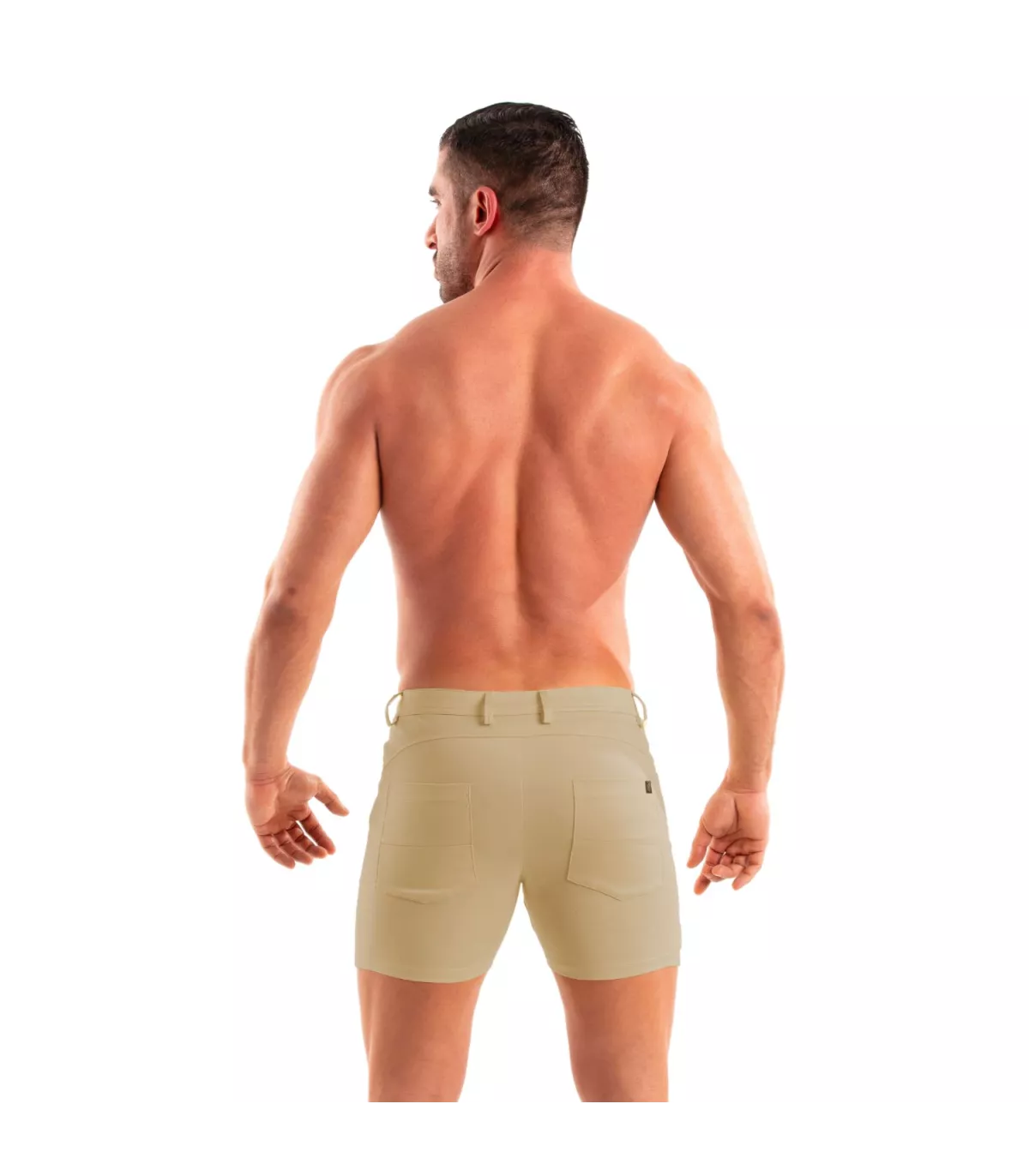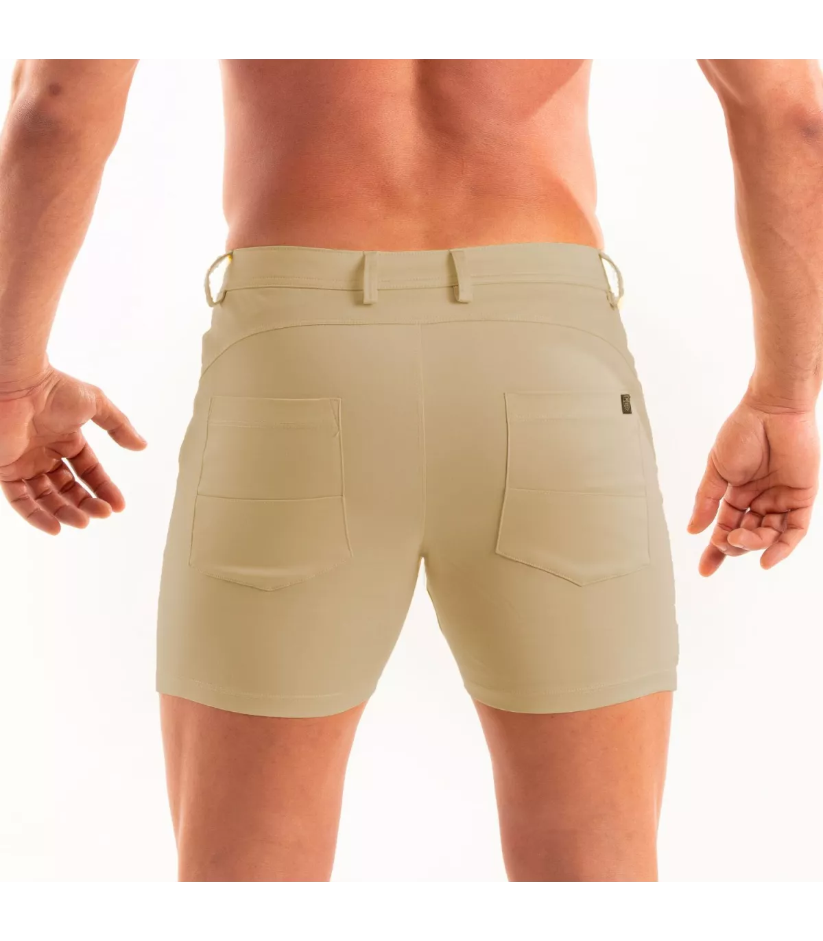 "The TOF Paris chino short is much more than just a men's short short. it combines style, comfort, and quality. its slim fit and stretch fabric make it the perfect companion for sunny days. personally, i love wearing it with a men's sports tank top for a casual yet sexy look. it's an essential piece for every man's wardrobe."