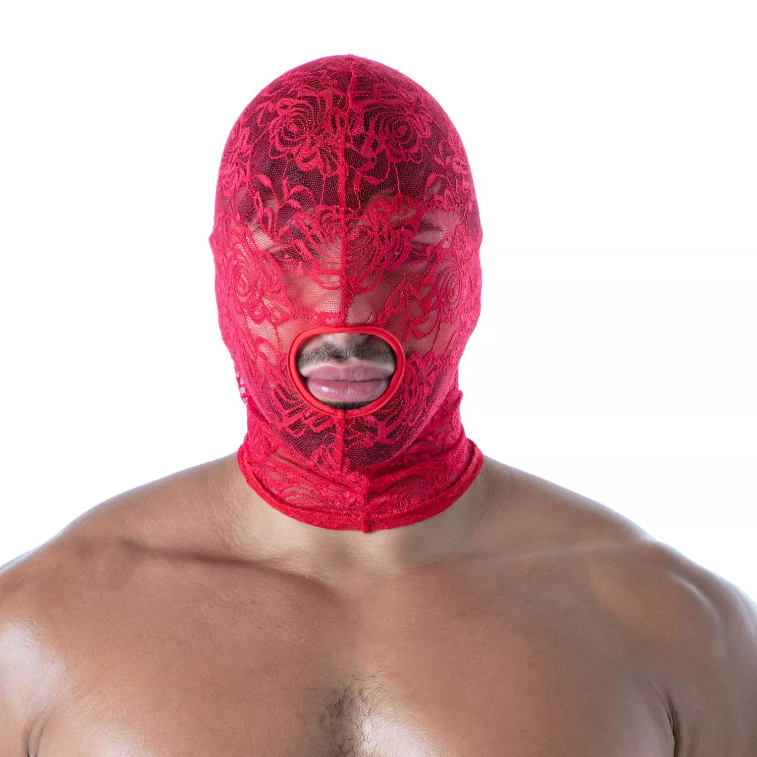 Discover our sexy open-mouth hood in sheer red lace, an erotic accessory designed to enhance your intimate play and intensify your mystery. This refined piece combines floral openwork lace, a sensual cut, and meticulous Parisian craftsmanship to create a sophisticated and provocative look.