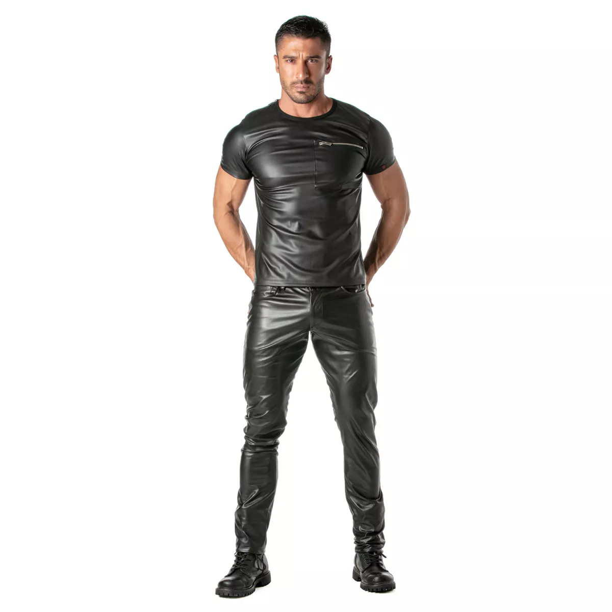 Dare to embrace a bold look with the Kinky men's pants by TOF Paris. Crafted from premium faux leather with a suede lining, these pants perfectly combine sensuality and comfort. Their low-rise fit, fitted cut, and subtle butt-lifting design enhance your curves, making them a standout piece for confident style enthusiasts. Ideal for outings, parties, or events, they feature 4 practical pockets and a TOF Paris-branded jeans button, ensuring quality and elegance.