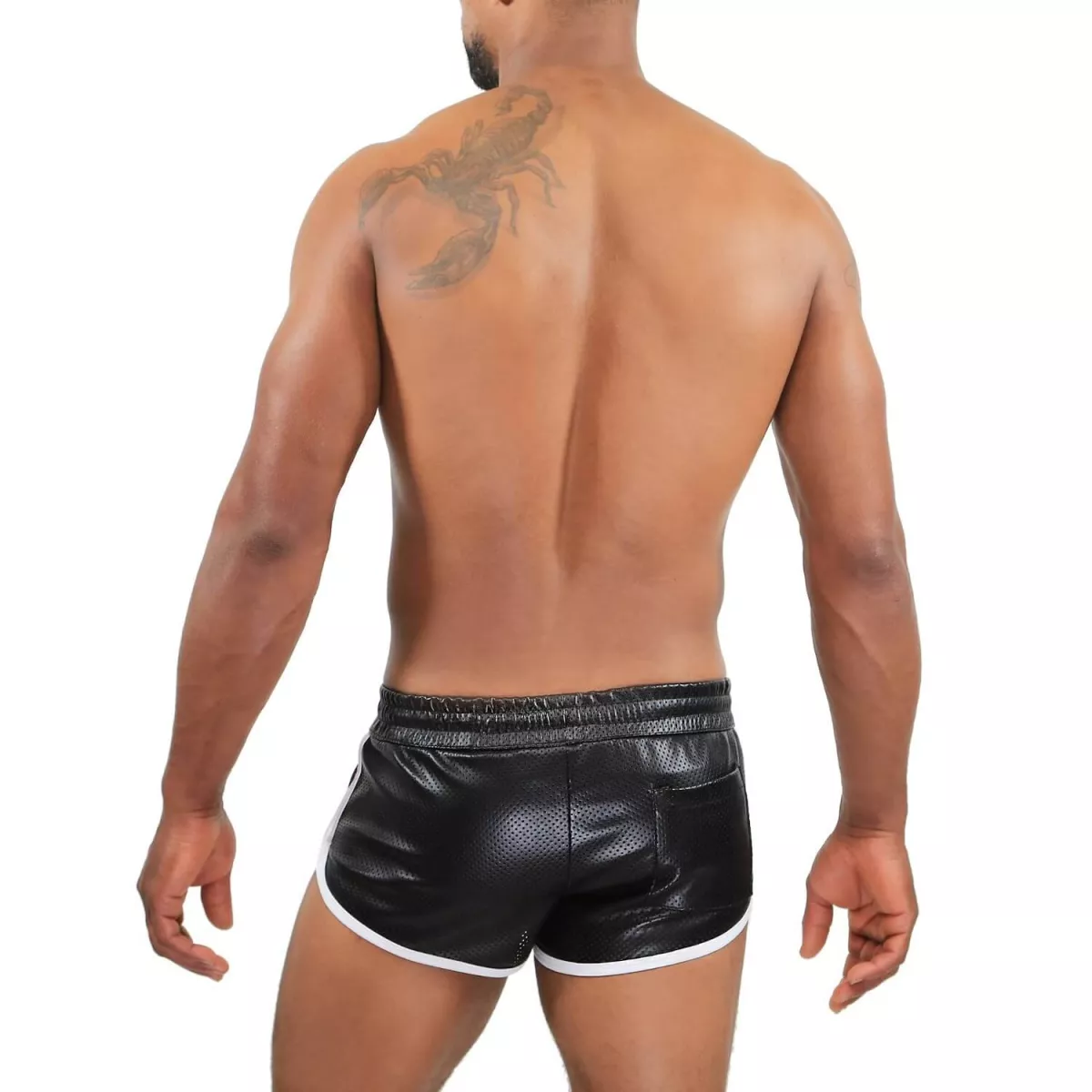 Pilot shorts are very sexy, retro-styled and tight-fitting. A must on the dance floor, Pilot shorts are made in perforated, realistic imitation leather fabric. They come with contrasting bands that perfectly define the buttocks.
