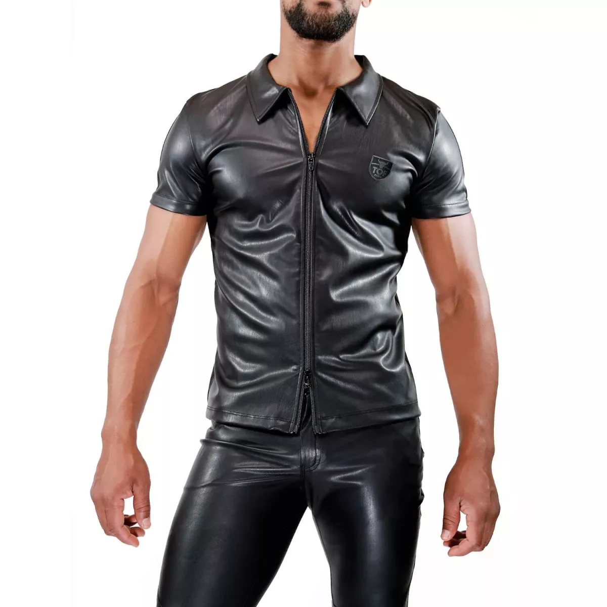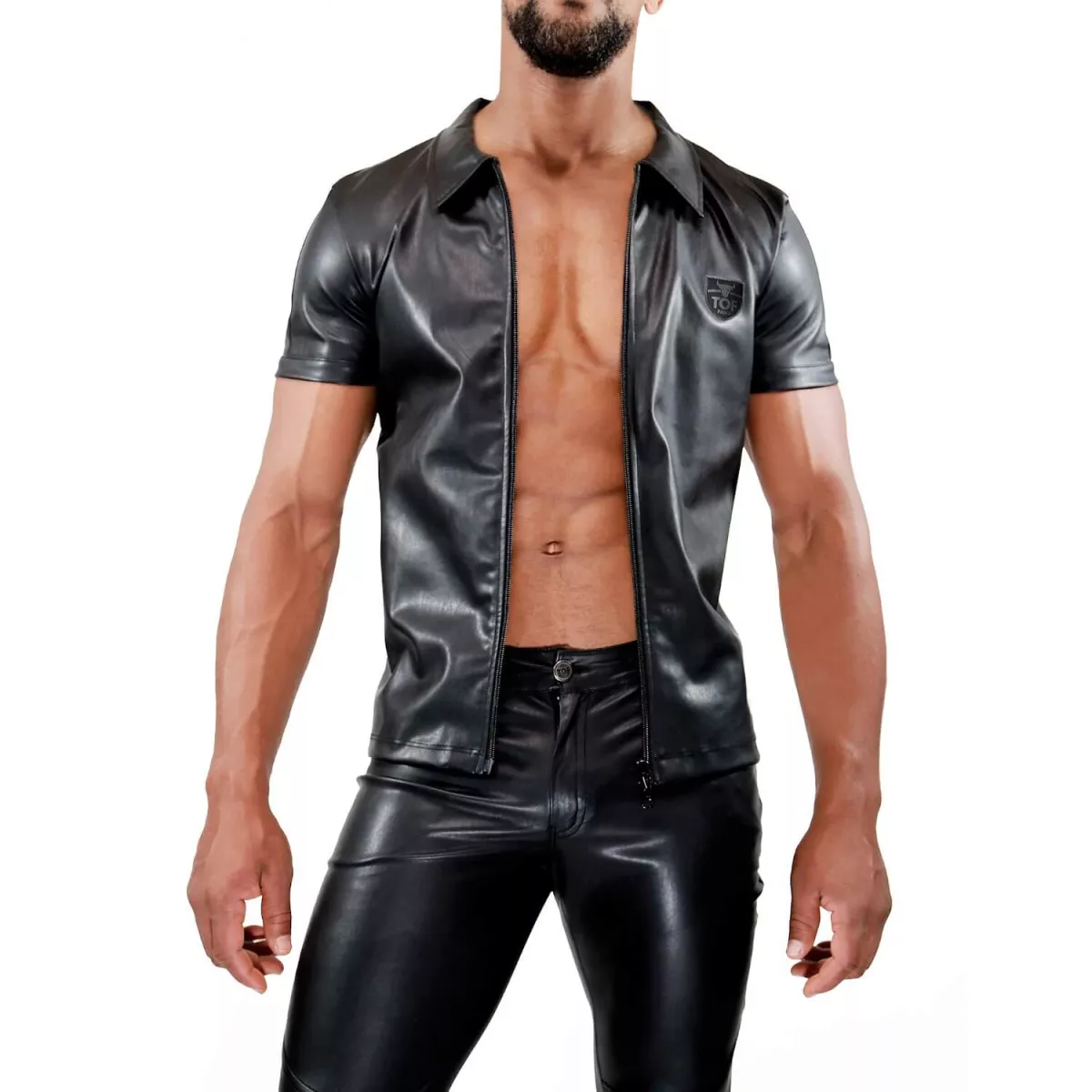 This chic, fetish-style zipped jacket is ultra-sexy. It is made in incredibly lifelike imitation leather. The quality makes the difference almost unnoticeable at first glance.