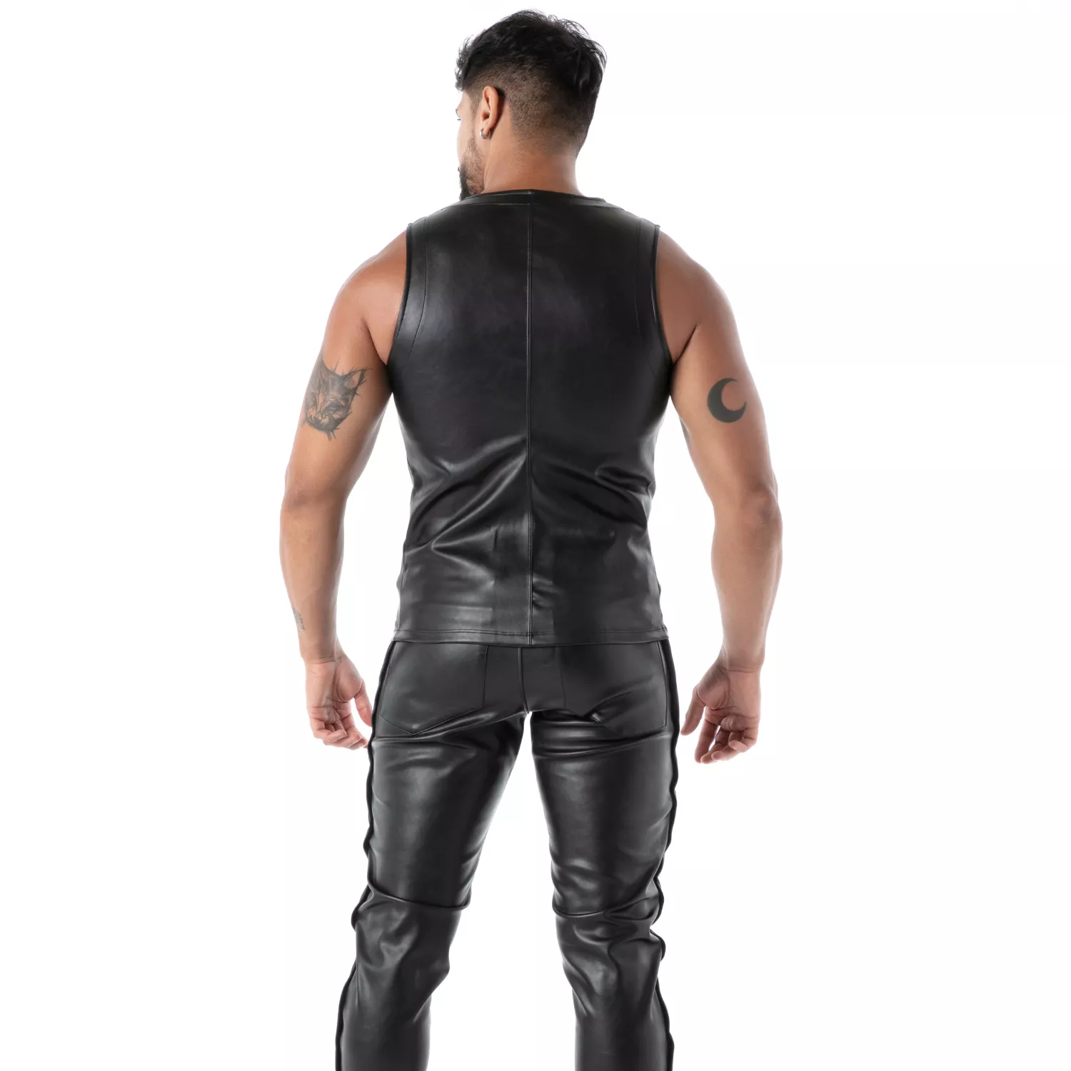 “As a men’s fashion expert for over 20 years, I recommend this tank to any man looking to add a bold, signature piece to his sexy wardrobe. The front zip is perfect for that ‘wow’ factor, the athletic slim cut enhances your physique, and the fact that it’s made in France is a rare bonus in the men’s seductionwear market. Pair it with a black blazer and skinny jeans for a night out, or wear it solo with faux leather pants for the club. Black is timeless — and always effective.”