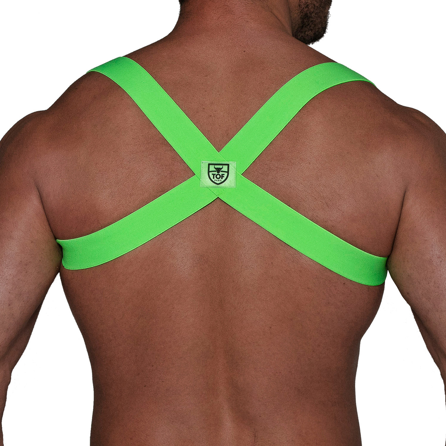 Explore the party boy green fluorescent elastic harness: an essential for your nightlife wardrobe. Featuring a cross-back elastic strap and Zamac buckle, it highlights the chest with standout style and comfort. Available in sizes XS-XXL.