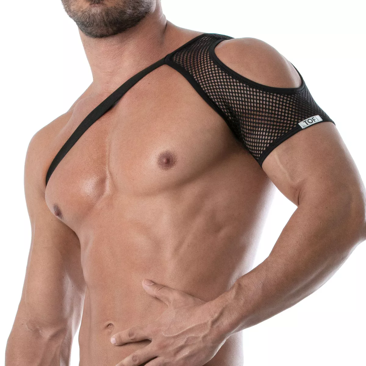 -Shoulder harness in transparent mesh fabric