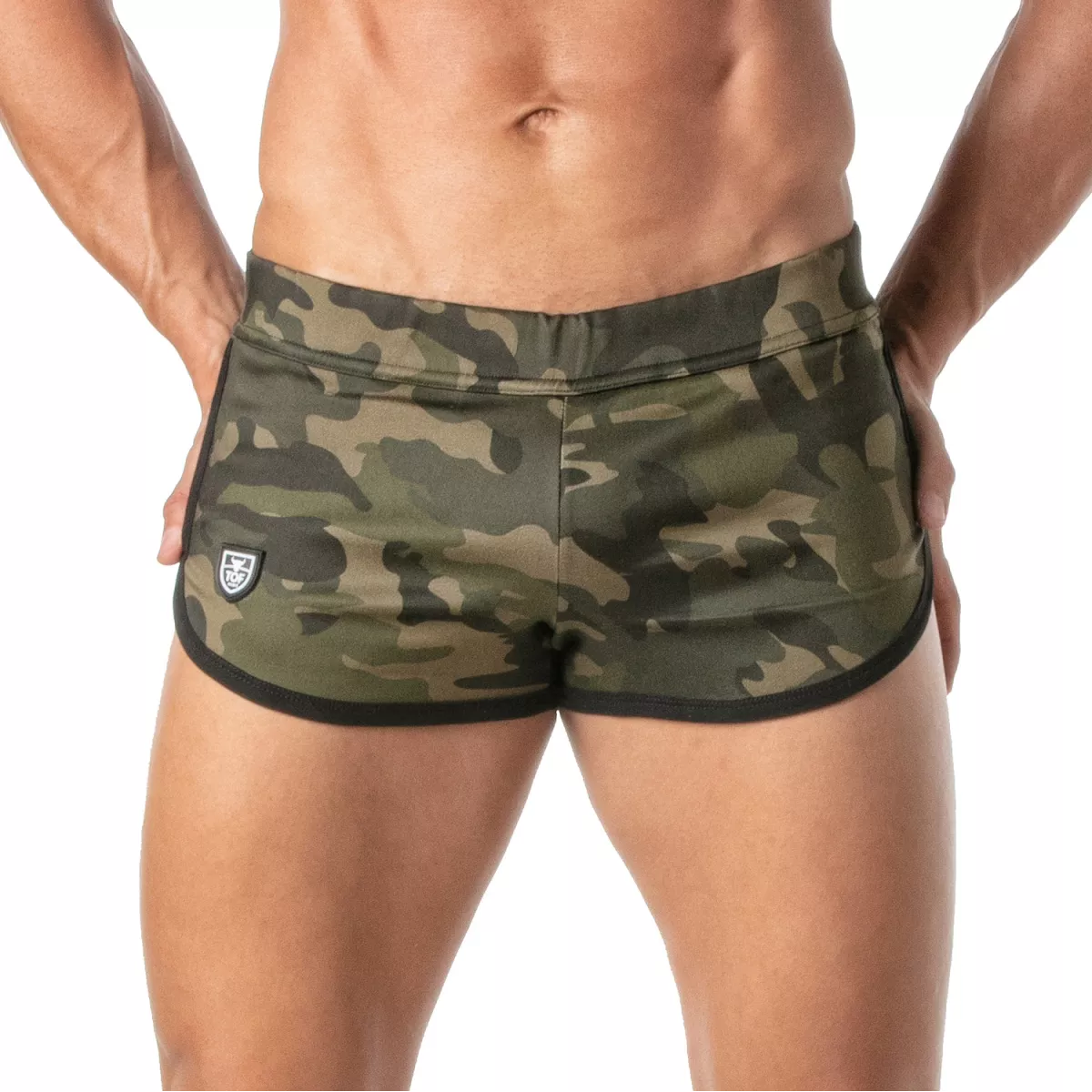 Unleash your boldness with the sexy military mini shorts by TOF Paris. These low-rise shorts with a camouflage pattern are designed for a masculine, sexy, and confident style. Their retro cut enhances the silhouette, while the stretchy fabric ensures optimal comfort.