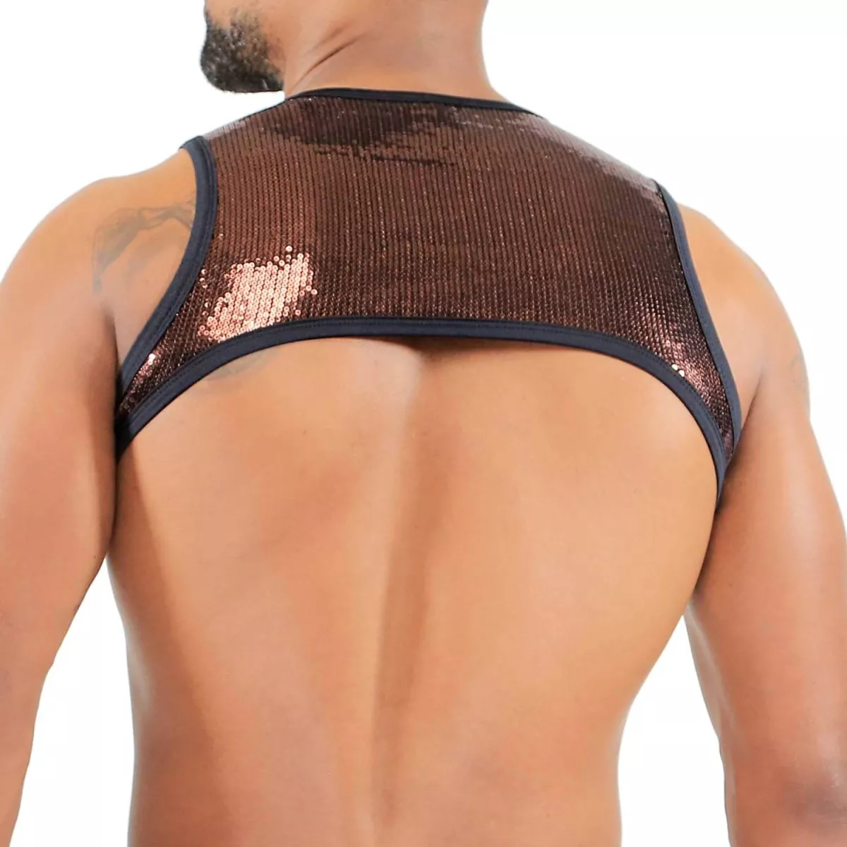 This original garment is designed for nightclubbing. It reappropriates the spirit of classic harnesses, making it a light and elegant garment. It's already a favourite with nightclubbers.