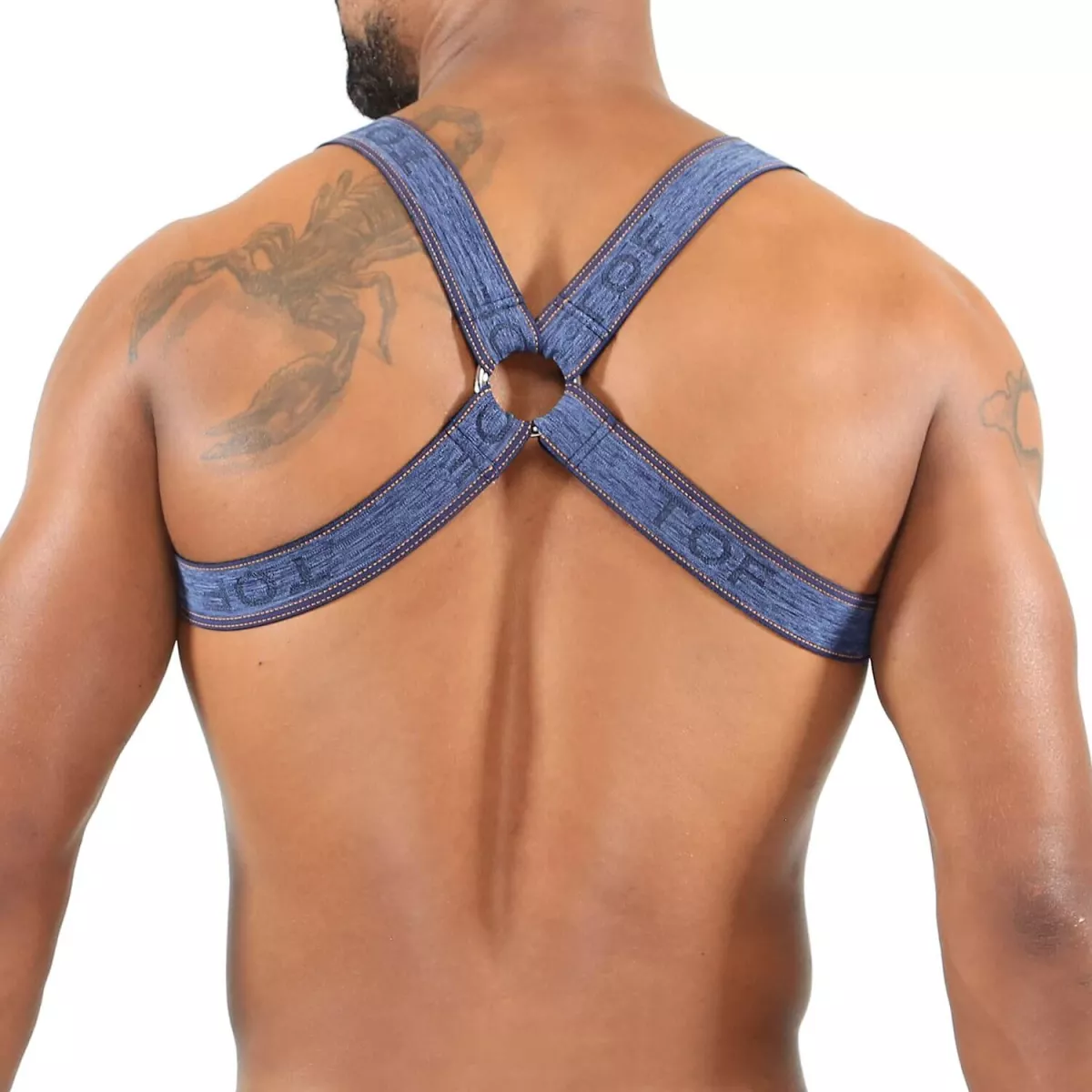 This jacquard elastic harness is the first harness imitating the jeans ! Both H and X form for a manly style.