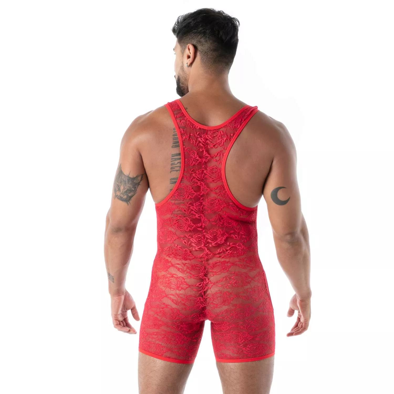 Dare to wear sheer boldness: this open wrestling body with red lace pouch is more than just underwear - it’s a statement of masculine seduction. Inspired by the world of wrestling, it combines the visual strength of a high-cut fit with the alluring delicacy of red lace. It redefines the sexy men's bodysuit for those who want to express desire without compromise.