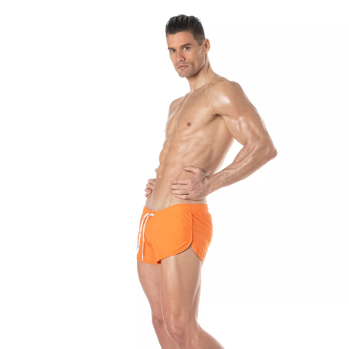 - Elevated Style: With their iconic side slit swimwear design, these orange swim shorts are a statement of elegance.