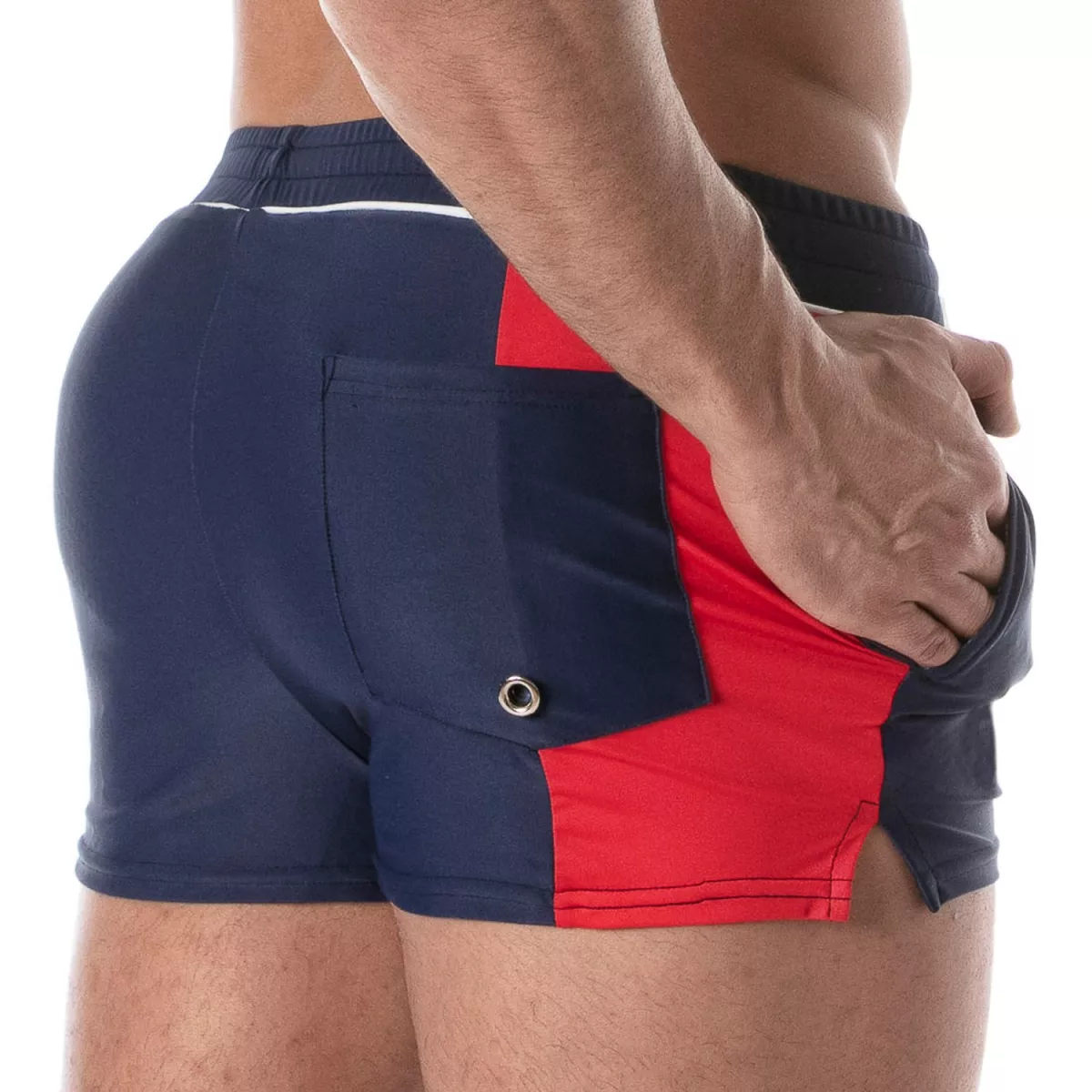 The Holidays swim shorts are for bold, fashion-forward men who know what they want. Whether your style is more classic or you're into shorter, edgier swimwear, this model adapts to your vibe. Pair them with pieces like the navy blue Patriot polo for a chic and sexy look—or why not switch things up with the mini Urban Jean shorts?