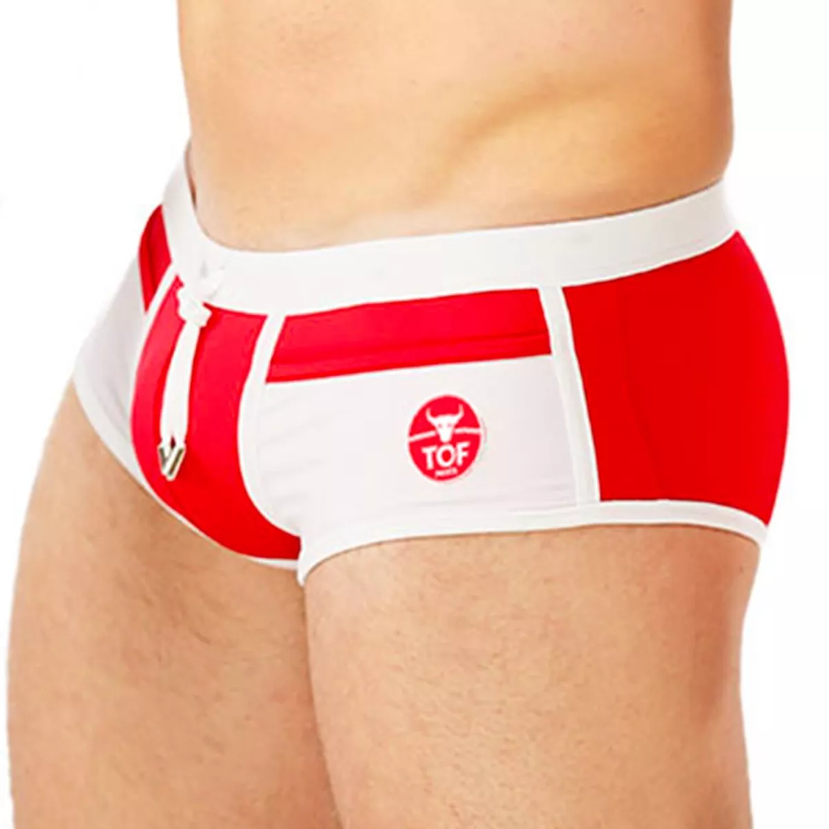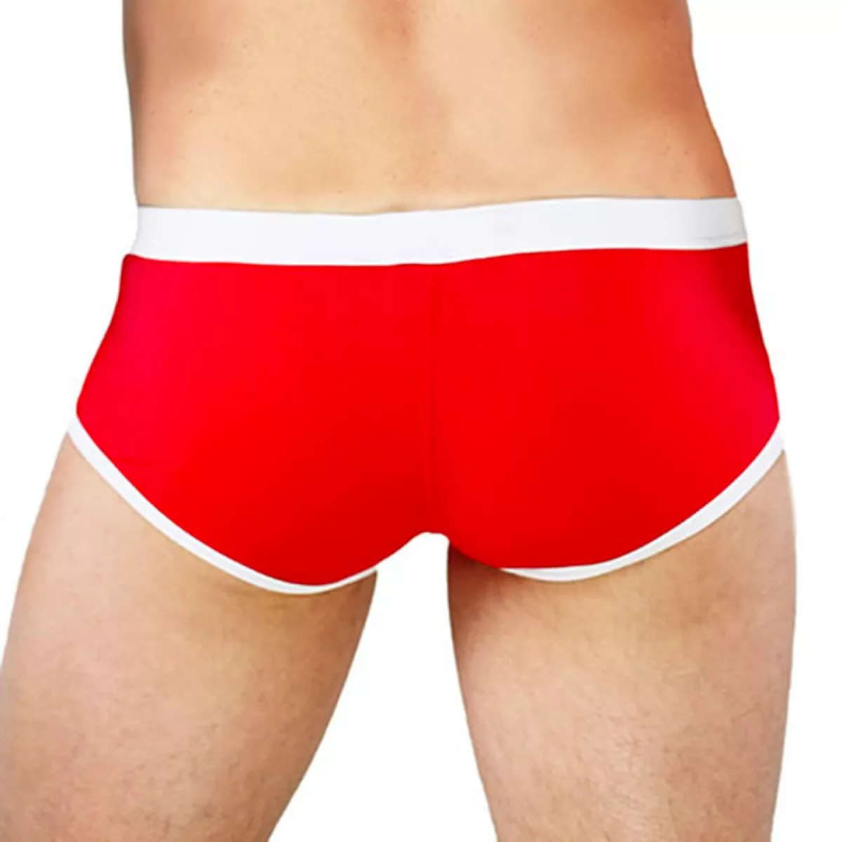 These designer swim shorts have a low waist, giving them a decidedly sexy look for the beach or the pool.
