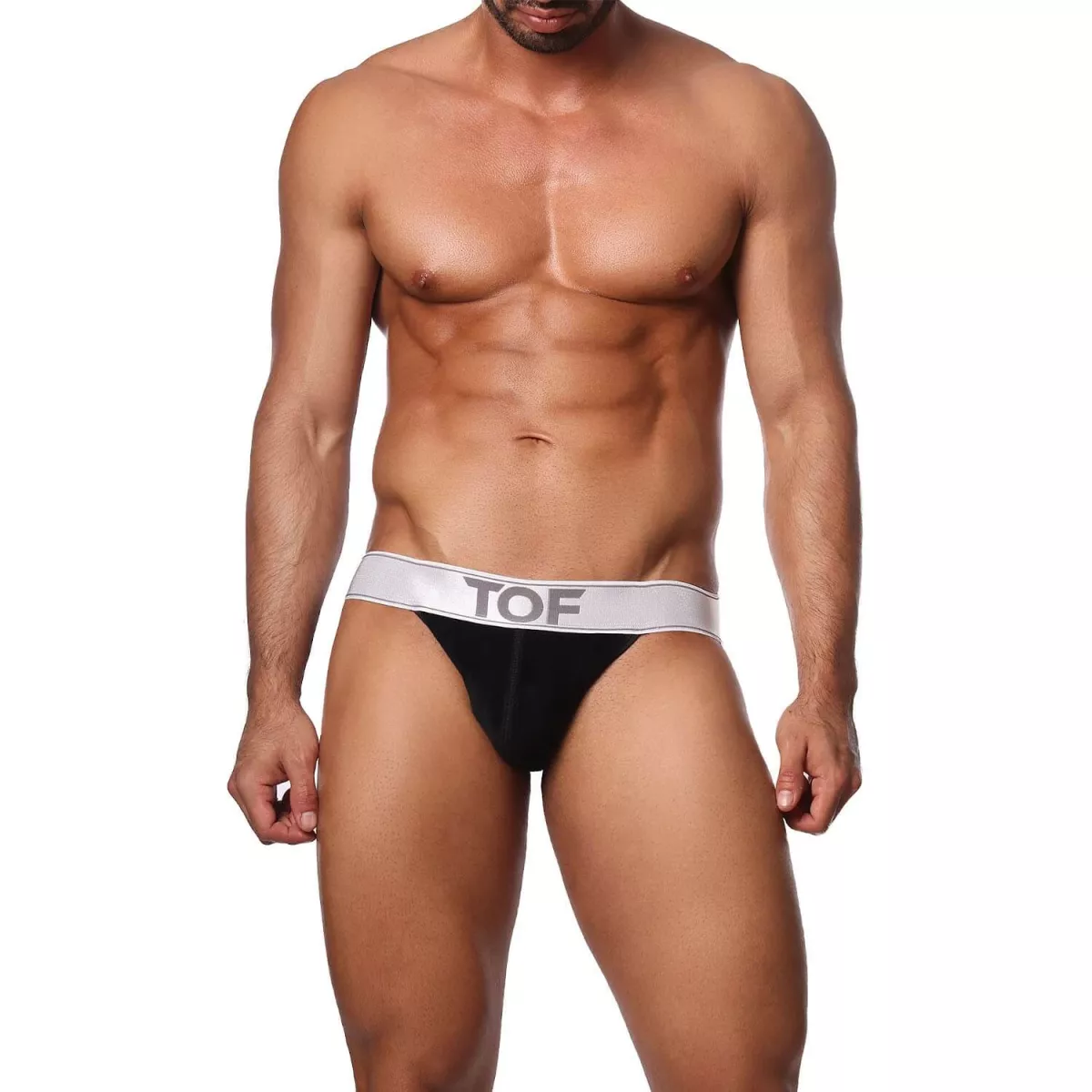 - The satin elastic waistband bears the TOF logo.