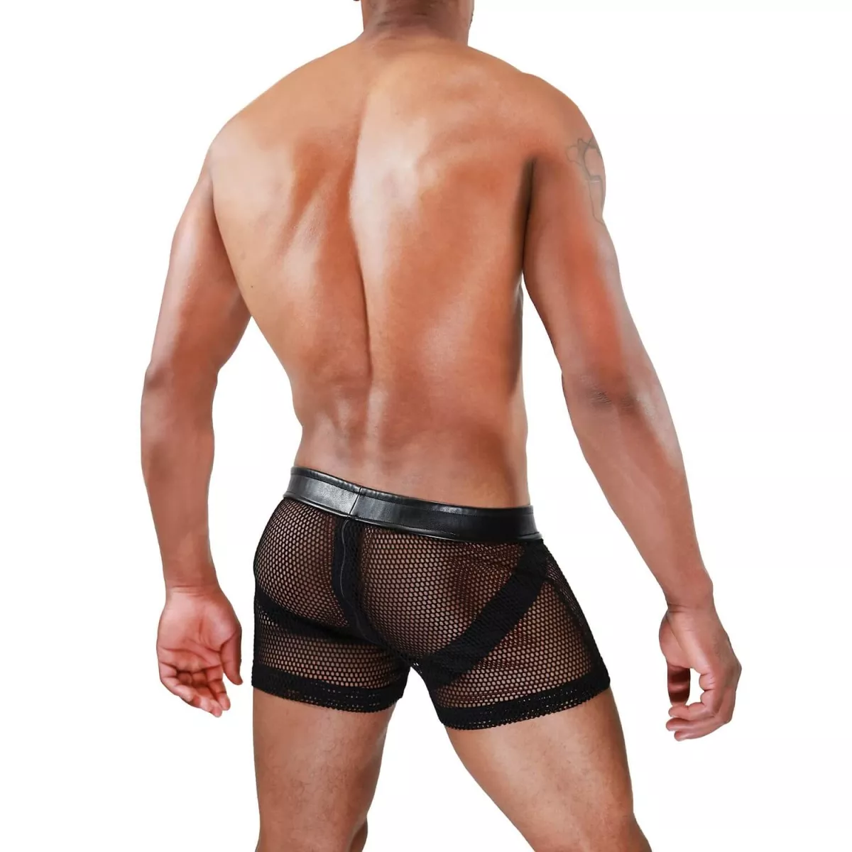 TOF Paris innovation! These shorts are revolutionary! They consist of ultra-sexy transparent mesh shorts with built-in jockstrap made from lifelike imitation leather, in a full zip version. You will love them or hate them!
