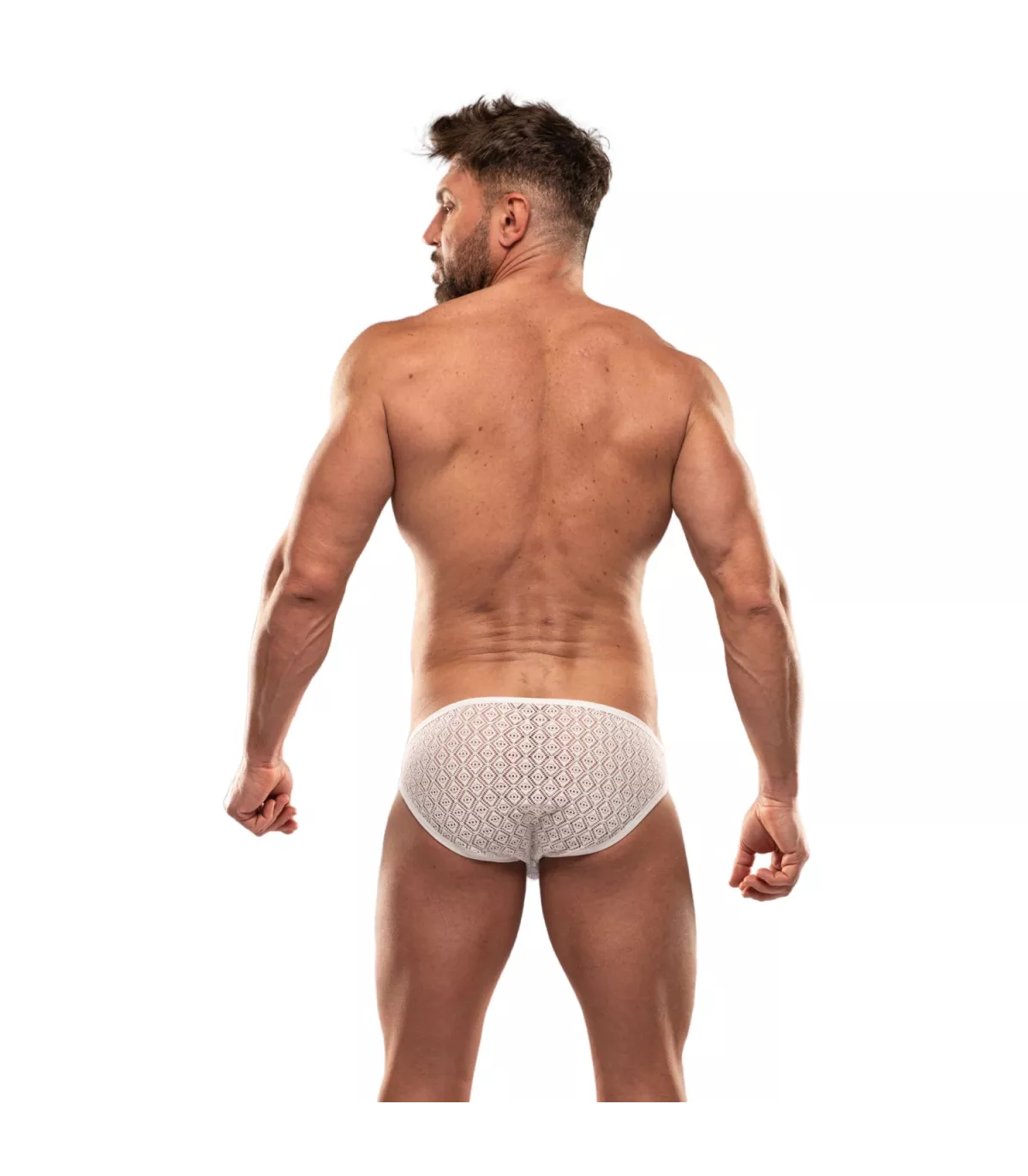 Minimalist brief in stretch lace – Low-waisted, unlined – Bias elastic trim for optimal comfort – TOF Paris logo sewn at the waist – Designed and sewn in Paris.