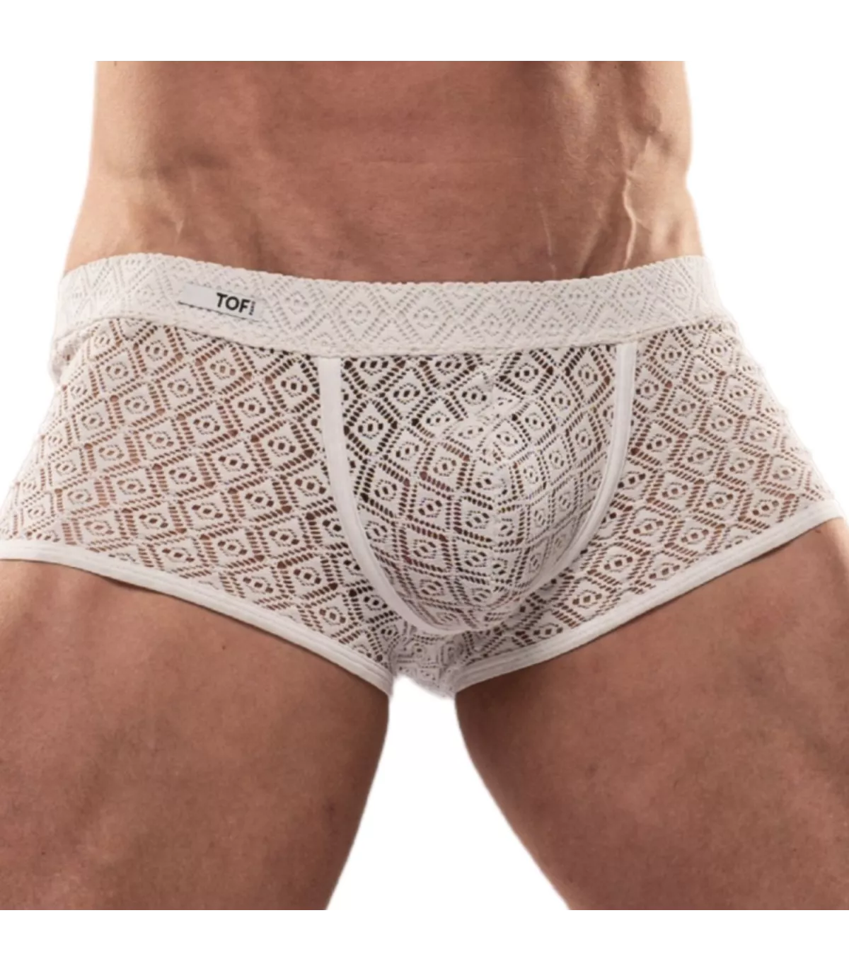 Short boxer in stretch lace – Low waist, slim fit – Unlined front pouch – TOF Paris logo sewn at the waist – Made in France.