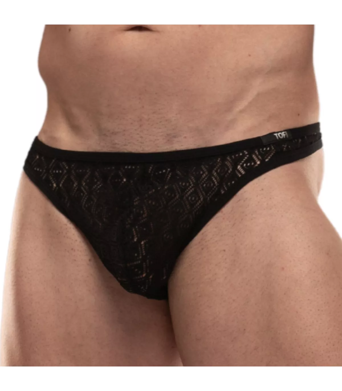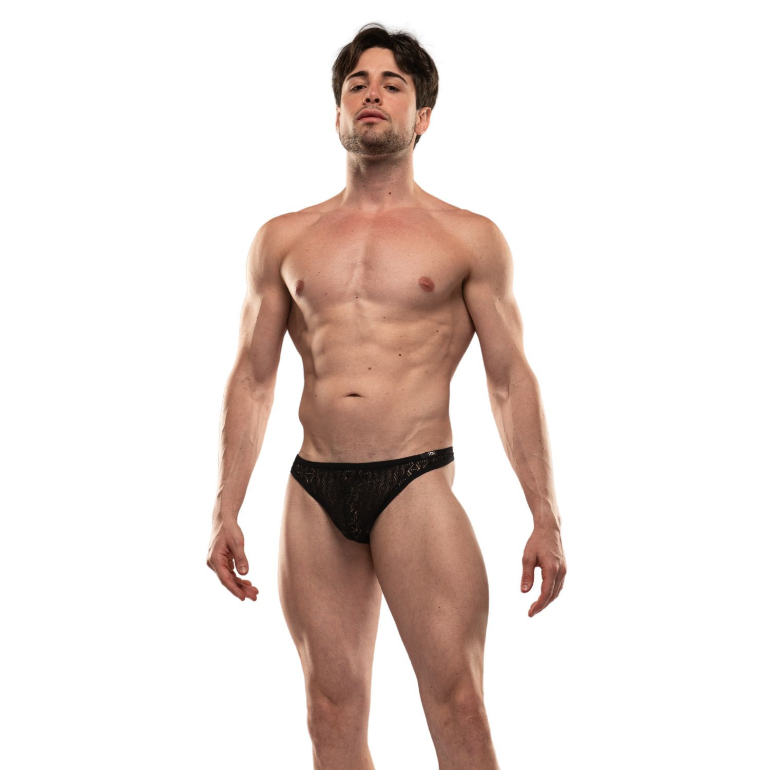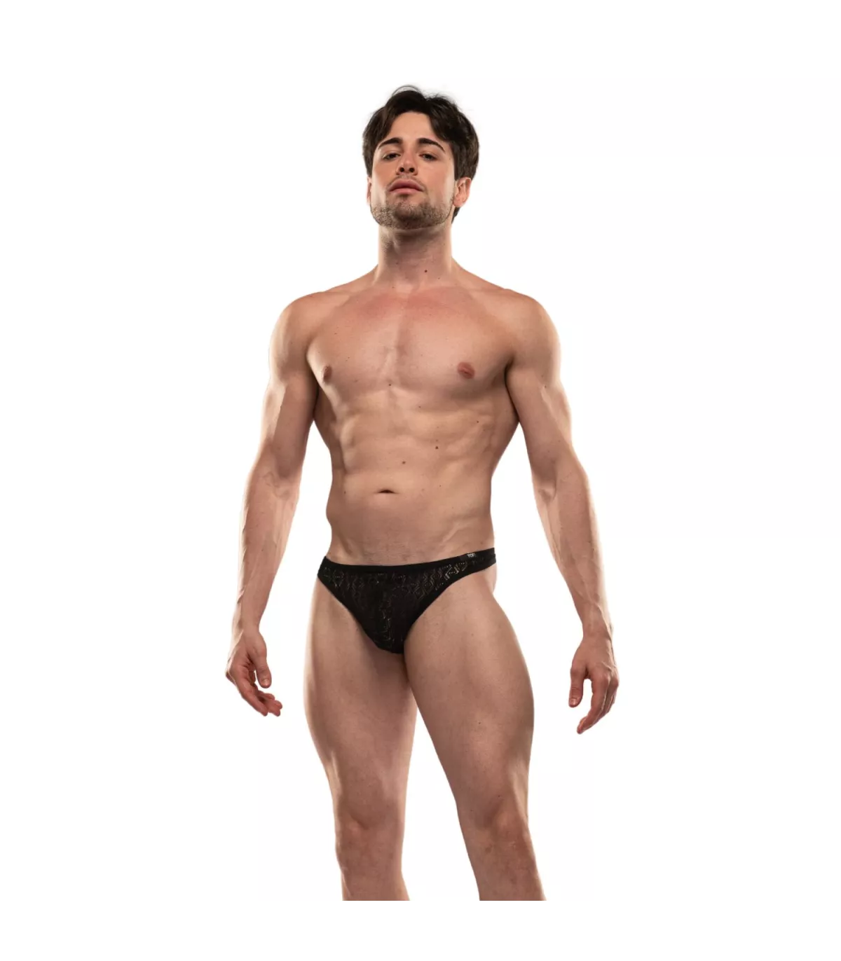 Original thong in stretch lace – Unlined front pouch – Elastic bias trim – TOF Paris logo sewn at the waist – Designed and sewn in Paris.
