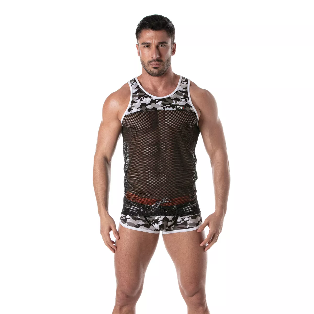 Iconic transparent mesh camo grey tank top - Style and comfort combined