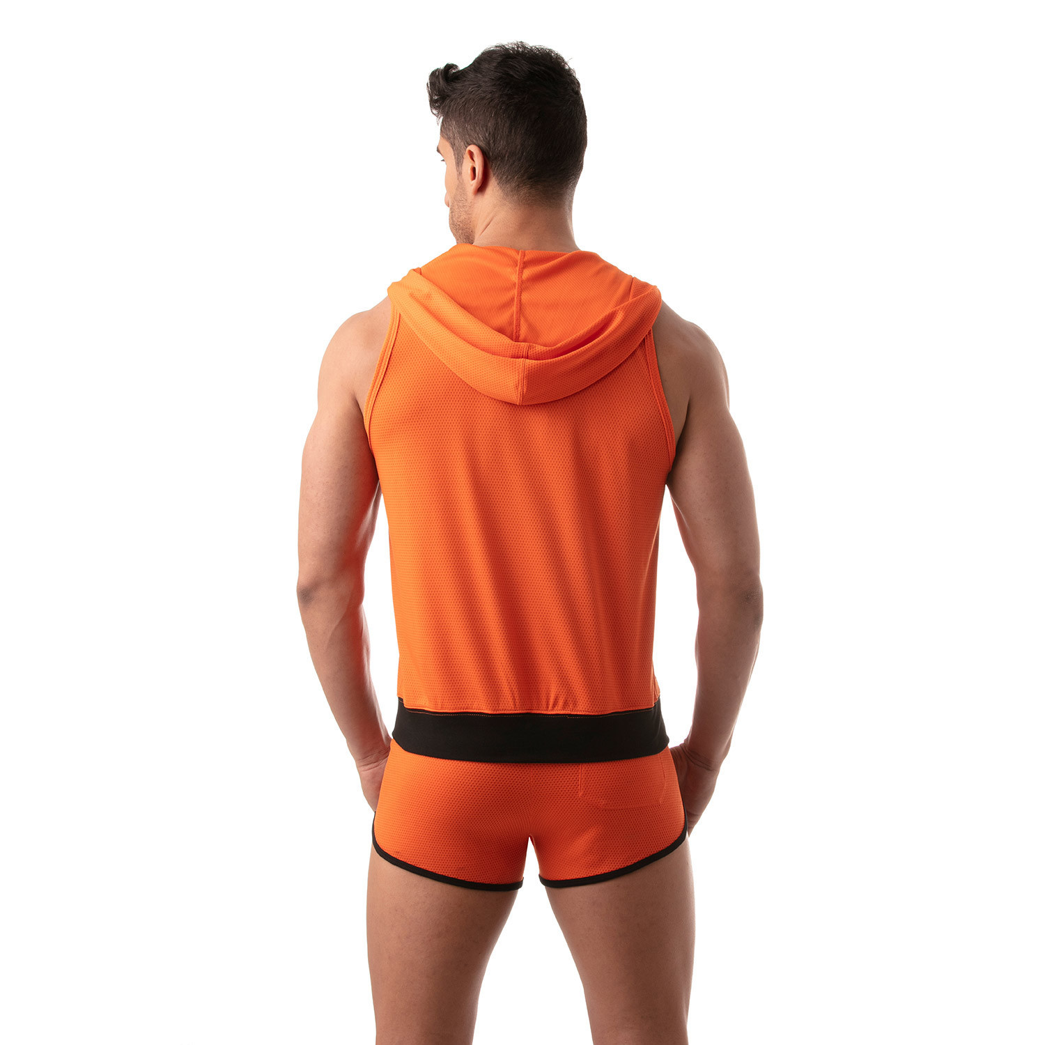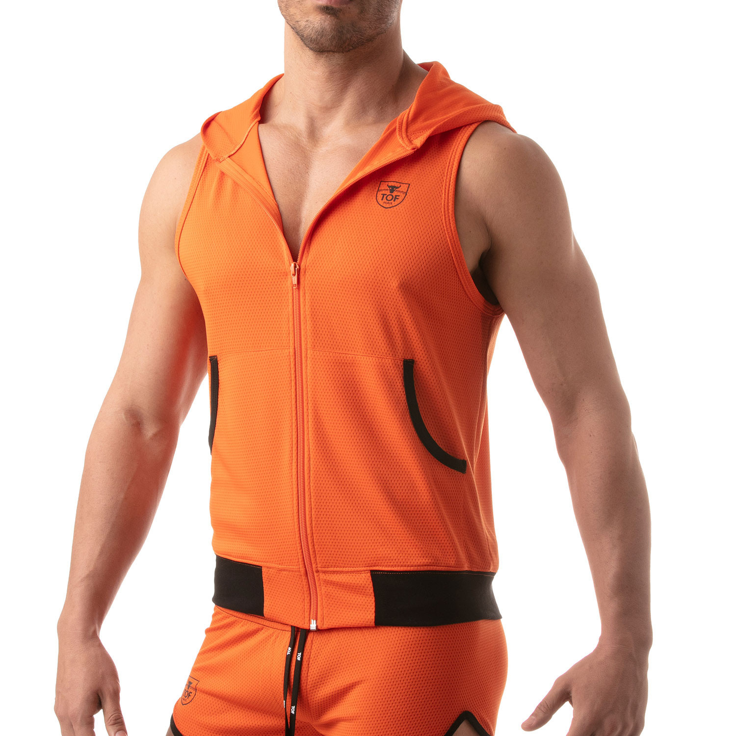 Fabrication Mesh Sleeveless Hoodie - Orange +