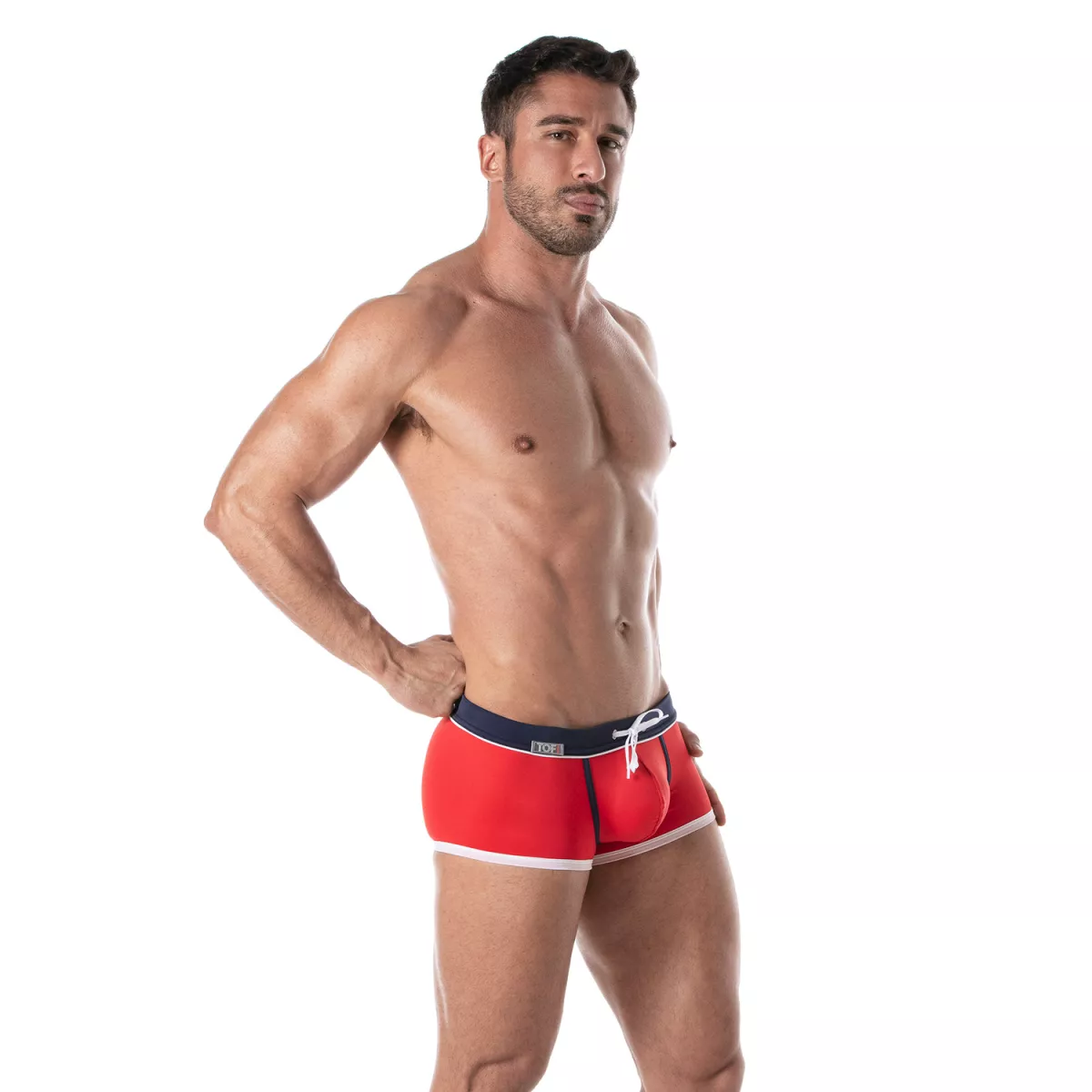 Adoptez un look sexy et tendance avec le boxer de bain sexy holidays de TOF Paris. Ce shorty de bain homme, conçu en tissu polyamide italien de qualité supérieure, offre une coupe ajustée et une taille basse qui met en valeur votre silhouette. Avec ses bandes contrastées élégantes et son design sans couture sur les côtés, ce boxer allie confort, style et audace.