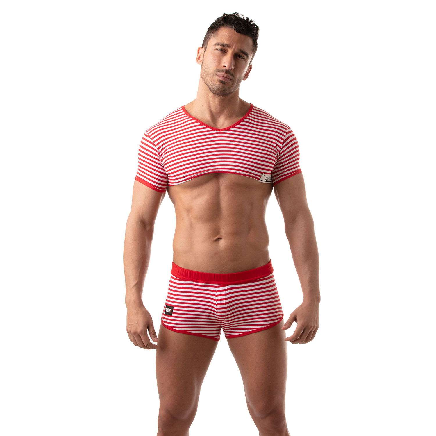 Affirmez votre style cet été avec le crop top sailor, un incontournable de la collection Crop tops homme de TOF Paris. Ce haut court homme au motif marinière revisité est la pièce parfaite pour un look provocant, sportif et résolument sexy. Associez-le à nos pièces Sexywear comme un Short sport Sexy homme ou un Slip de bain homme pour une tenue explosive.