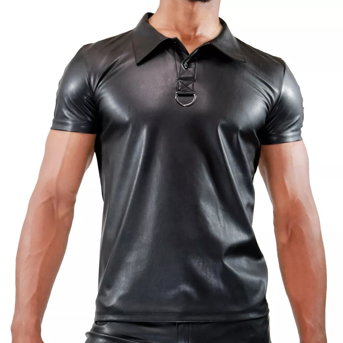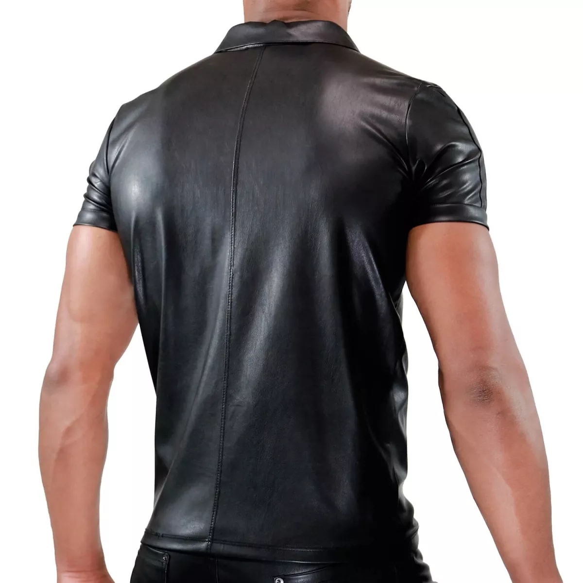 Ce polo, au style fetish chic, est ultra sexy, grâce à son tissu qui imite parfaitement le cuir. La qualité rend la différence presque invisible au premier coup d’œil. Le polo Fetish se porte à même la peau, seul ou sous une veste.