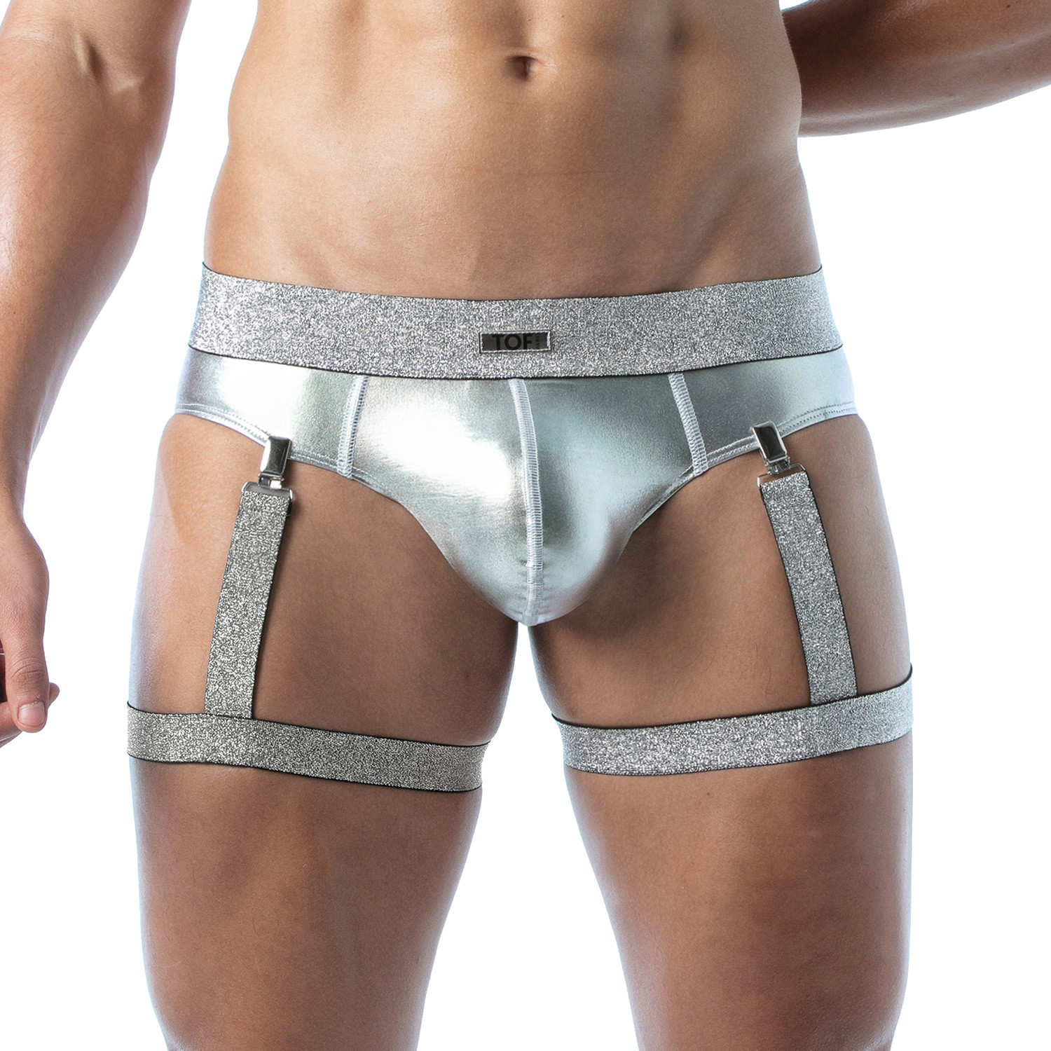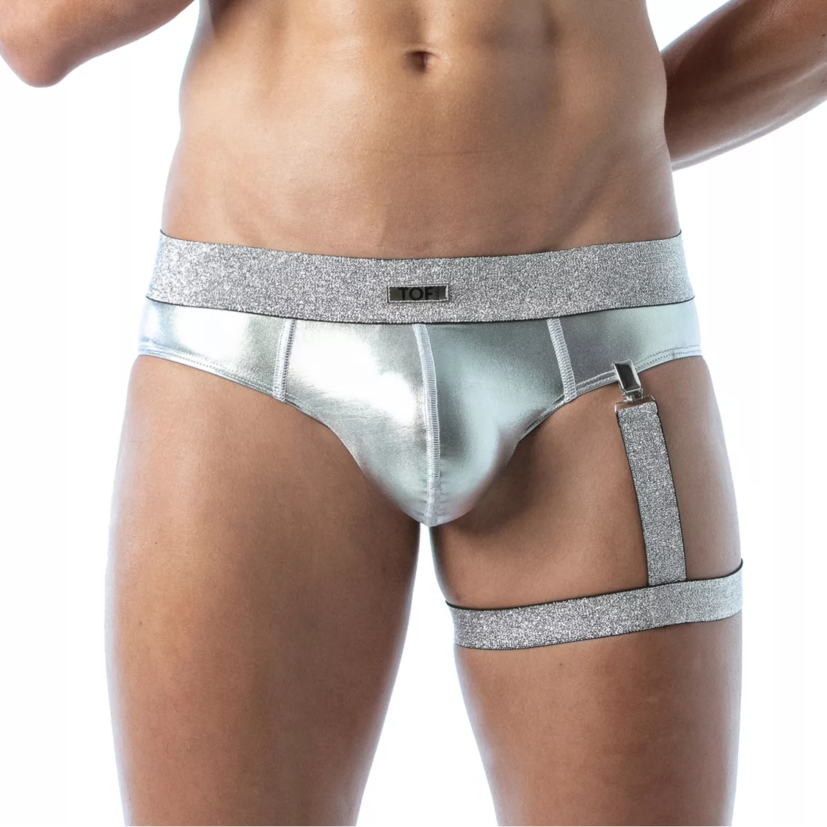 Faites sensation avec le harnais de cuisse magic argent, un harnais pour homme unique, inspiré des jarretelles. Cet accessoire sexy en lurex offre une brillance irrésistible et un confort exceptionnel, grâce à sa conception ajustable avec des boutons-pression. Fabriqué à Paris, il allie élégance et audace pour sublimer vos tenues les plus sensuelles.