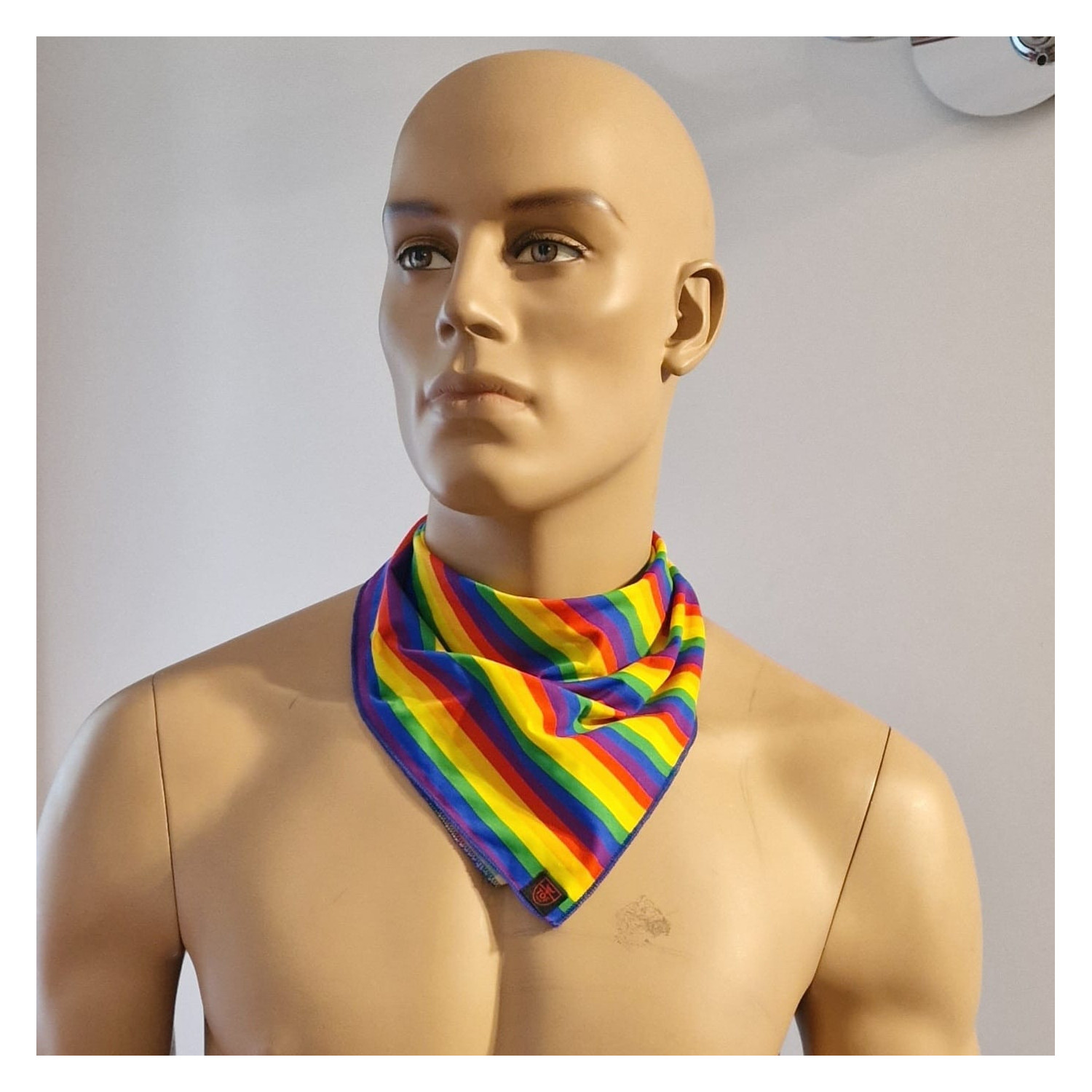 Ce bandana est fait pour tous ceux qui souhaitent ajouter une touche de couleur et d'audace à leur look. Il est particulièrement apprécié par la communauté LGBTQ+ pour son design inclusif, mais convient également à ceux qui aiment expérimenter des tenues de soirée ou des vêtements fetish. Complétez votre look avec des mini slips de bain homme ou un harnais d'épaule Rainbow pour un ensemble harmonieux.
