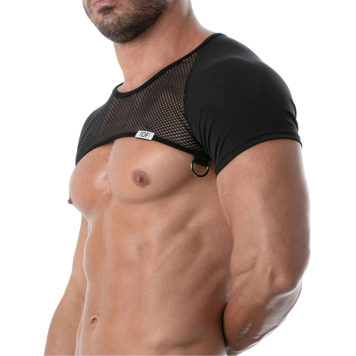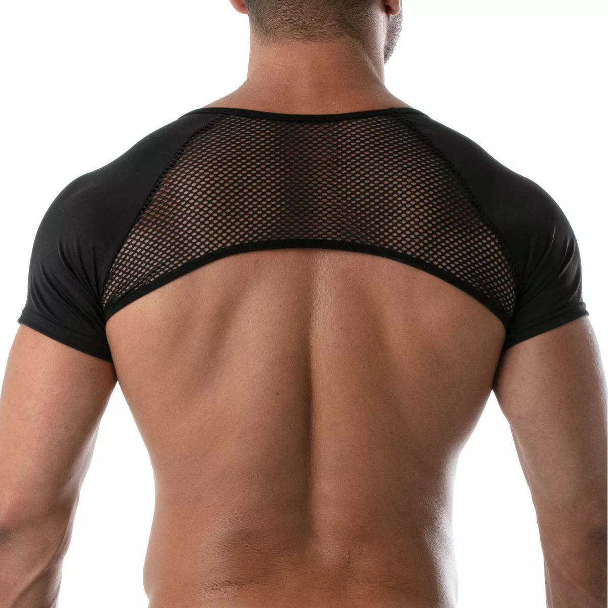 Demi haut à manche raglan dans un mélange lycra et mesh ajouré. La tenue parfaite pour une silhouette de gogo dancer !