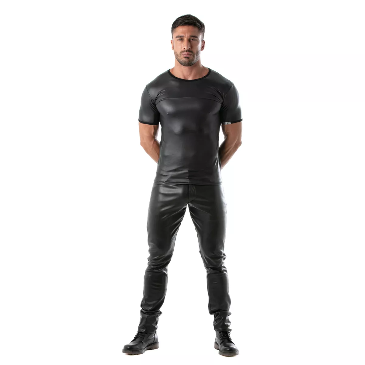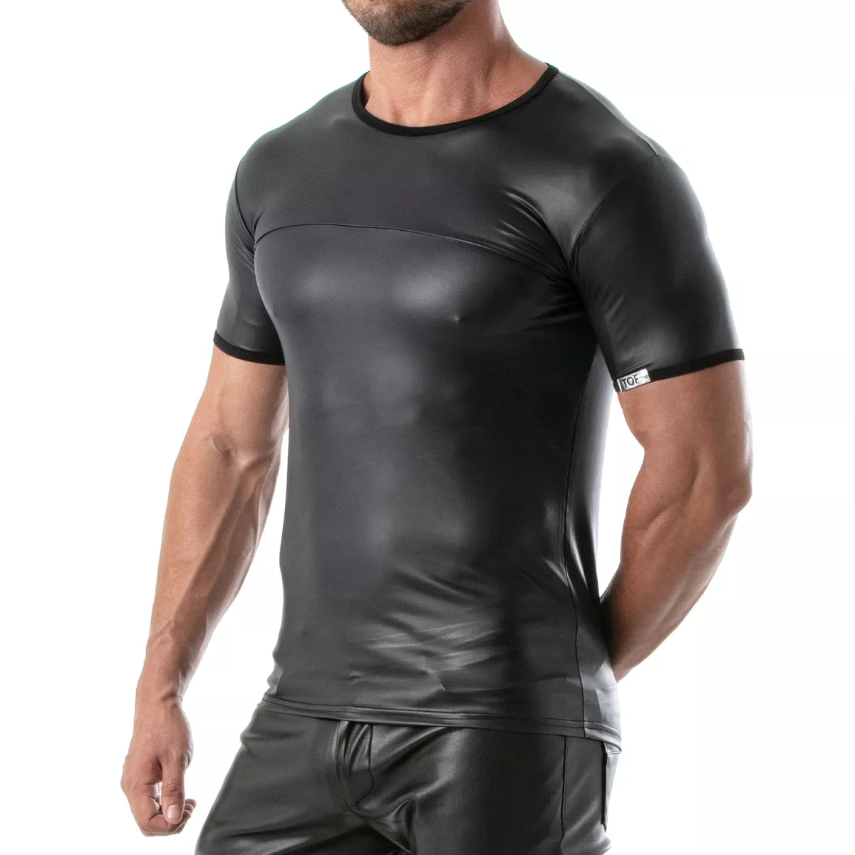 Découvrez l'ultime expression de la mode masculine audacieuse avec notre t-shirt fetish en similicuir extensible TOF Paris. Conçu pour ceux qui osent affirmer leur style, ce T-shirt moulant homme est une pièce maîtresse de la garde-robe moderne. Conjuguant avec brio élégance et provocation, il incarne parfaitement l'esprit de la mode gay et du clubwear masculin.