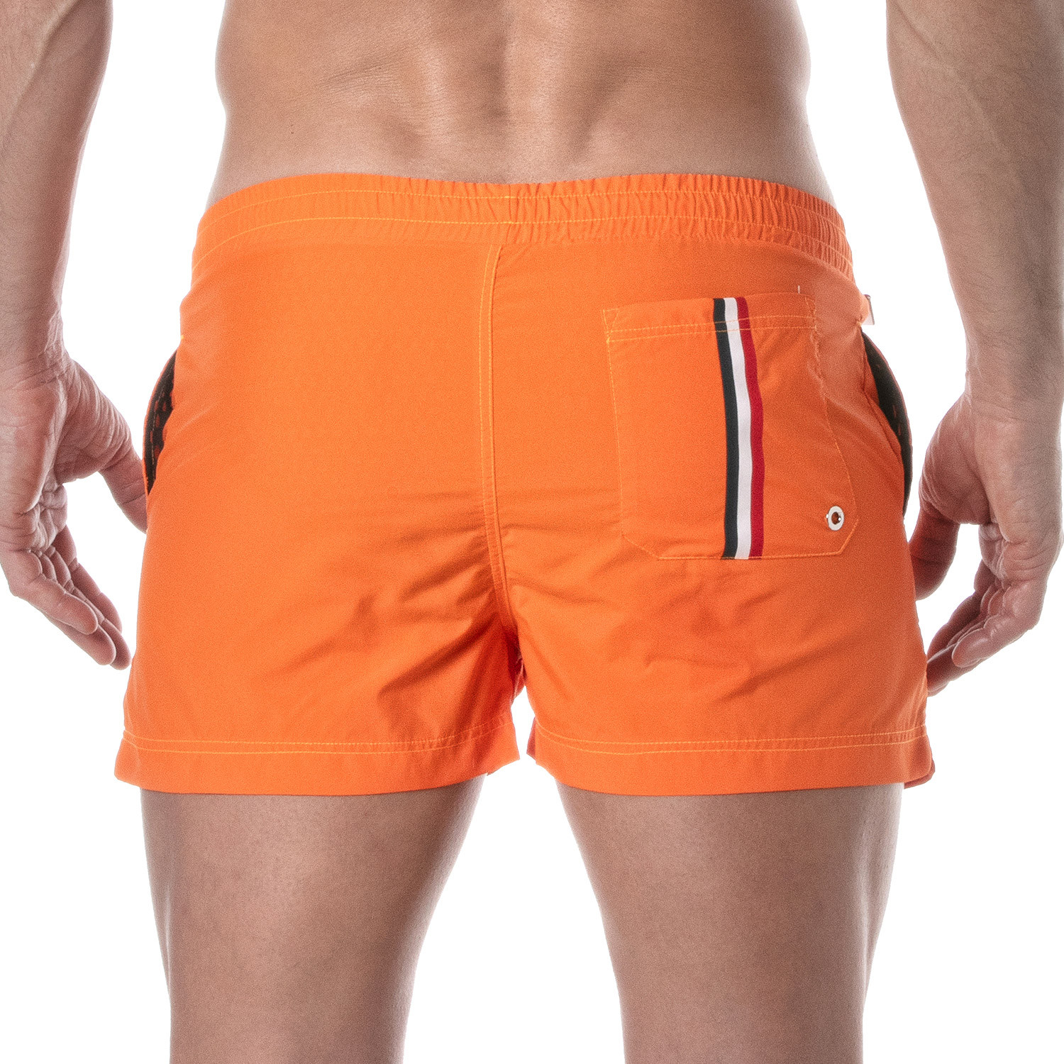 Découvrez notre Short de bain mi-cuisse Orange : conçus pour les hommes, avec une coupe basse et ajustée, ce maillot rehausse le style avec une touche "cocorico". Poches pratiques, cordon assorti, créés à Paris.