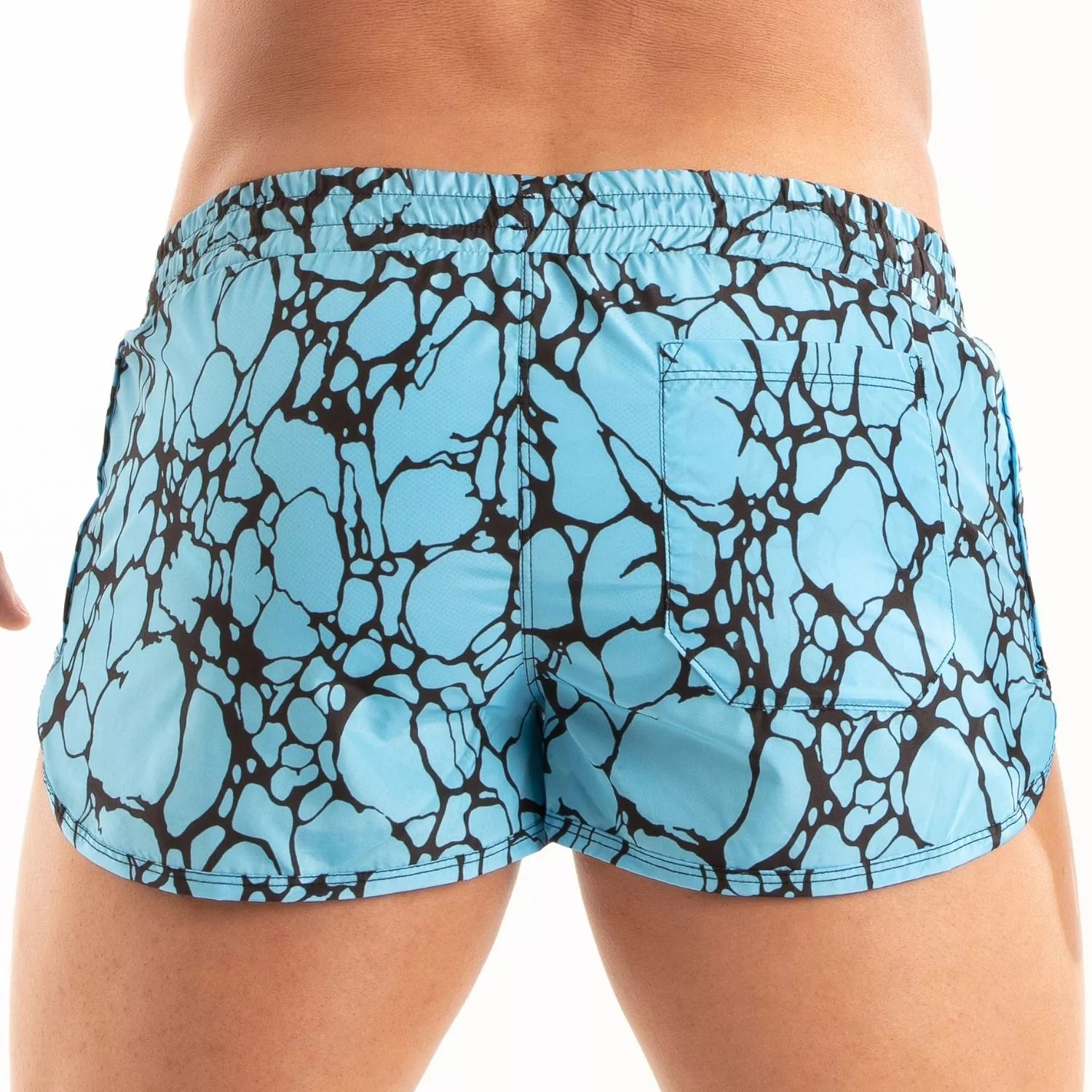 Mini short de bain imprimé bleu – le short sexy et tendance