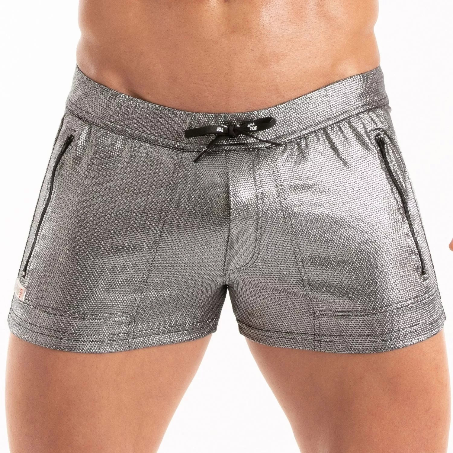 Short de bain zippé métal argenté – le short de bain à poches zippé homme ultra moderne