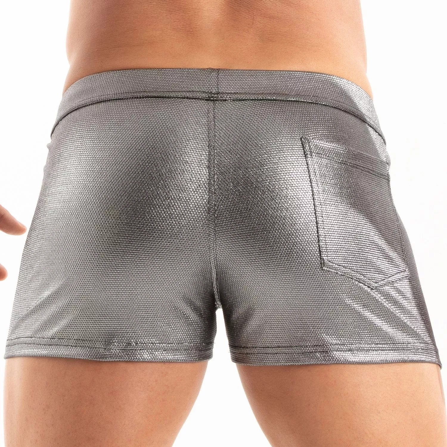 Matière Short de Bain Zippé Métal Argenté +