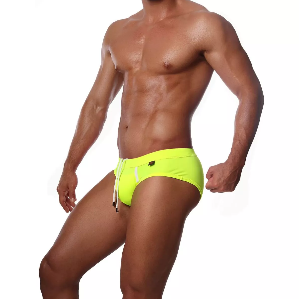 Le slip de bain branché des soirées fluo ! Le Happy Neon Swim brief est un slip de bain très ajusté et sexy. Il est cousu dans un tissu très doux fait de polyester et d’élastomère, ce qui lui confère solidité et élasticité.