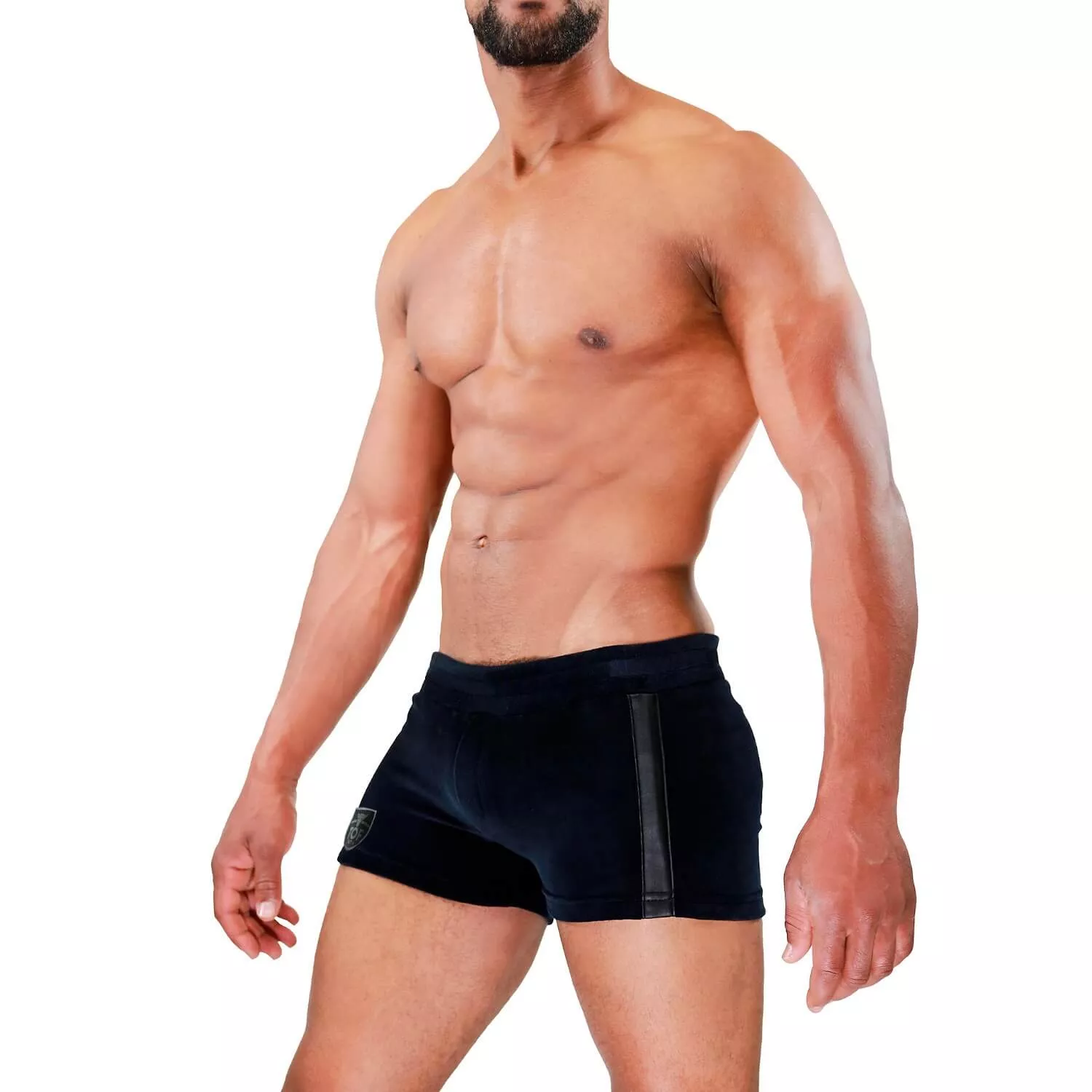 Le short Vienna se porte plutôt près du corps et se distingue par ses matières : la douceur du velours avec le côté masculin du cuir. Le short Vienna offre une silhouette à la fois élégante et sexy, avec une pointe d’inspiration fetish !