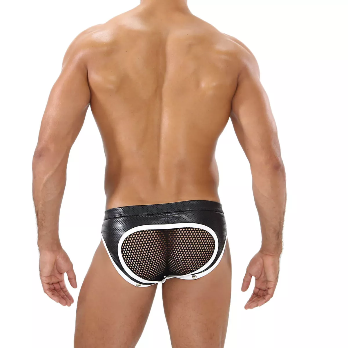 - Fausse coque conçue en faux-cuir pour le maintien de le bosse même quand le sous-vêtement n’est pas porté