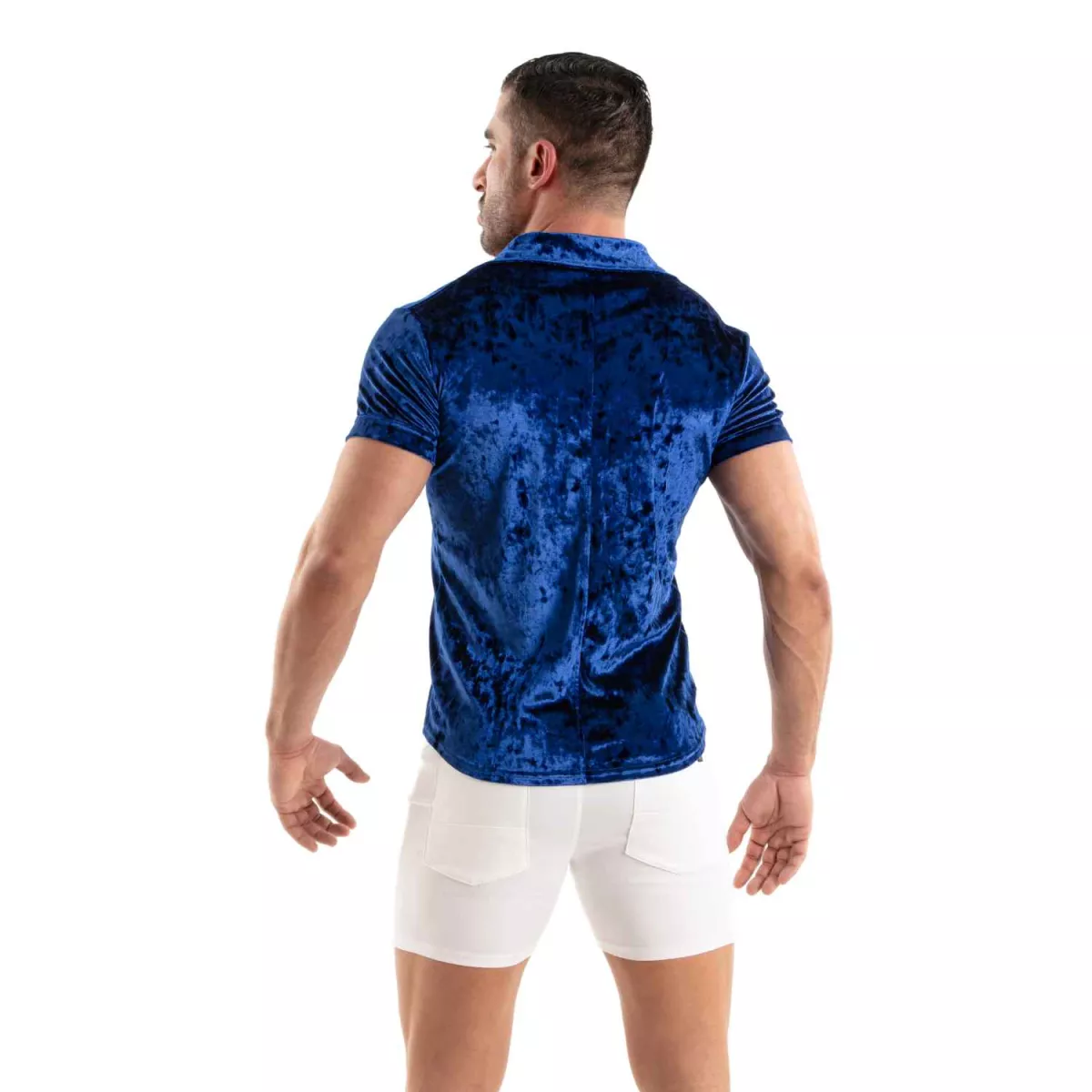 Le velours satiné confère à cette chemise un toucher ultra-doux et un éclat subtil. Sa coupe ajustée épouse le buste et met en valeur les formes sans entraver les mouvements. Avec ses manches courtes, elle allie élégance et décontraction, idéale pour un look chic et sexy.