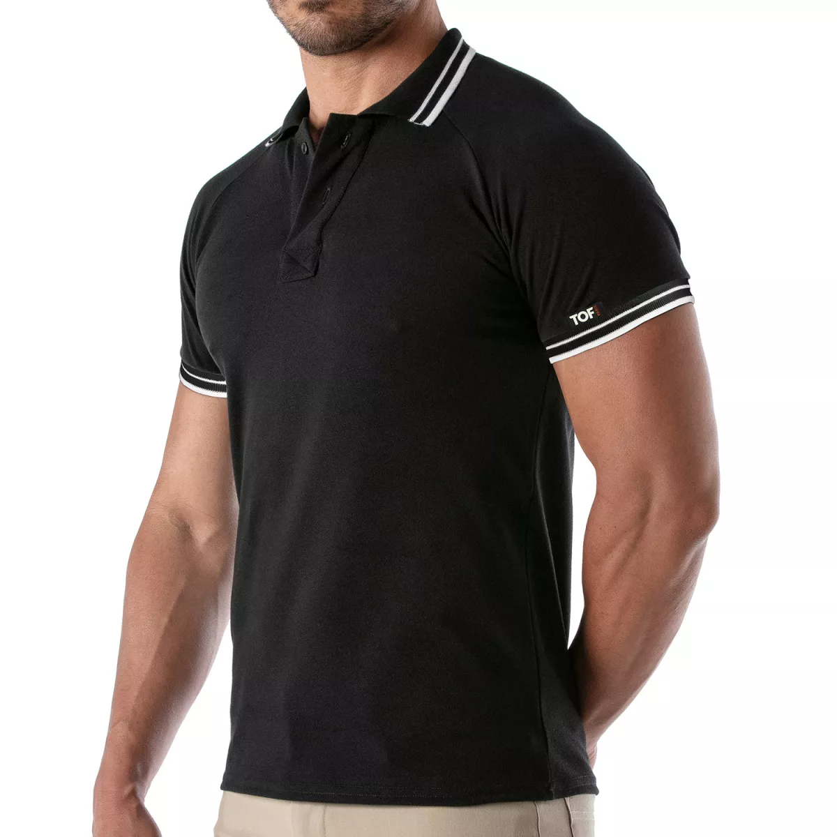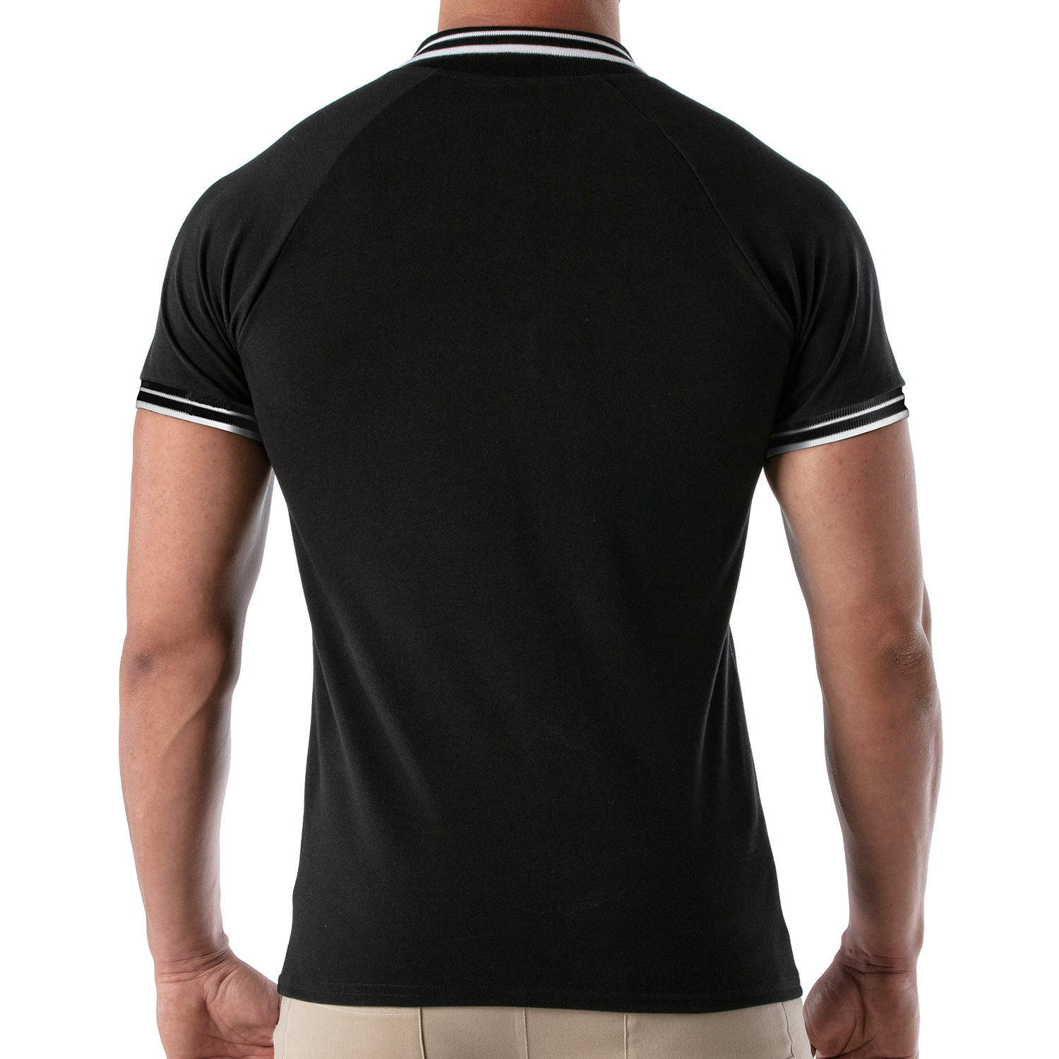 Polo à manches raglan en piqué de coton et aux bandes contrastées
