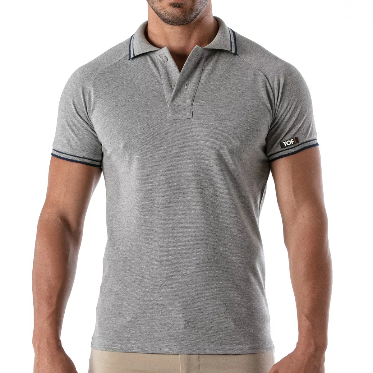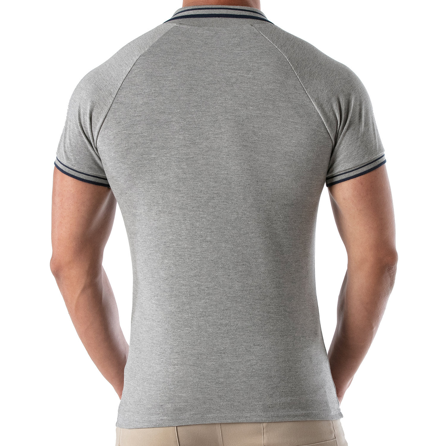 Polo à manches raglan en piqué de coton et aux bandes contrastées