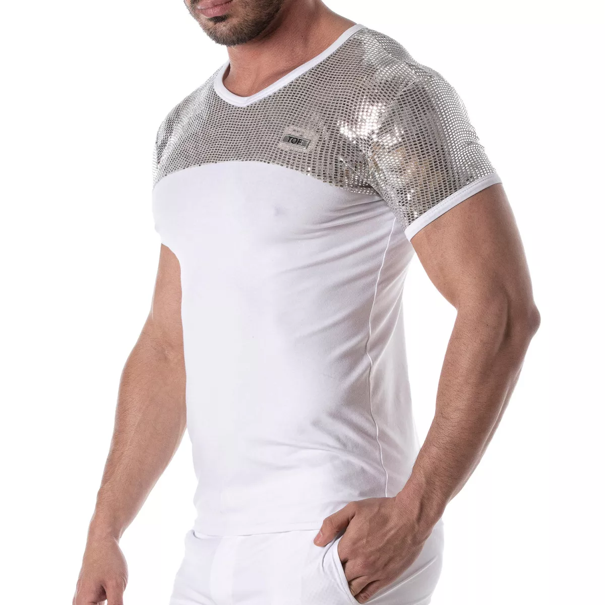 T-shirt sexy homme à paillettes argent | TOF Paris