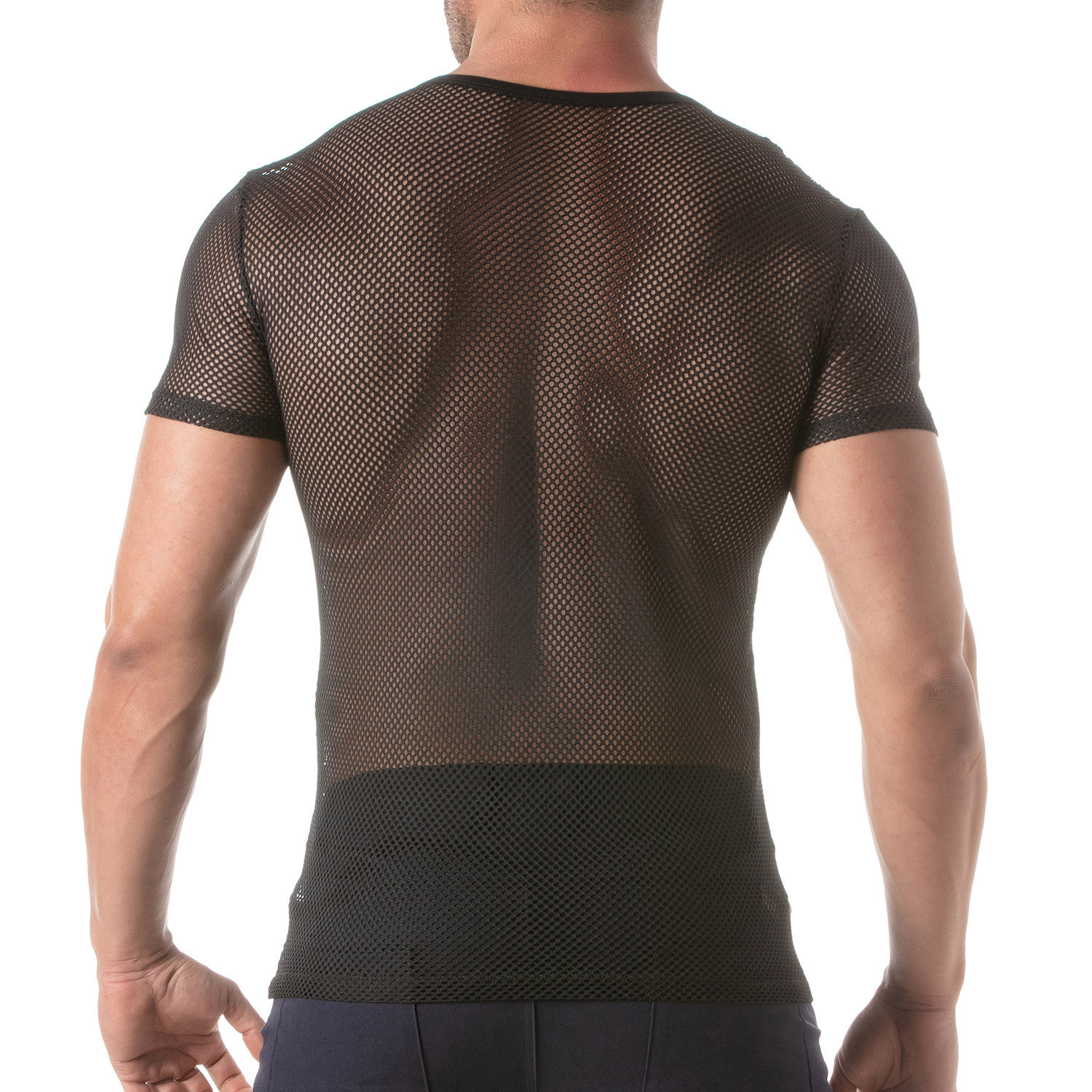 Le t-shirt en résille Circuit est fabriqué en tissu élasthanne ajouré, garantissant une texture légère et respirante. La résille italienne assure une grande robustesse et un confort optimal. Ce t-shirt à col rond et manches courtes épouse parfaitement les contours du corps, offrant une coupe ajustée qui met en valeur la silhouette. Le t-shirt manches courtes est idéal pour les soirées et les sorties où vous souhaitez faire forte impression.