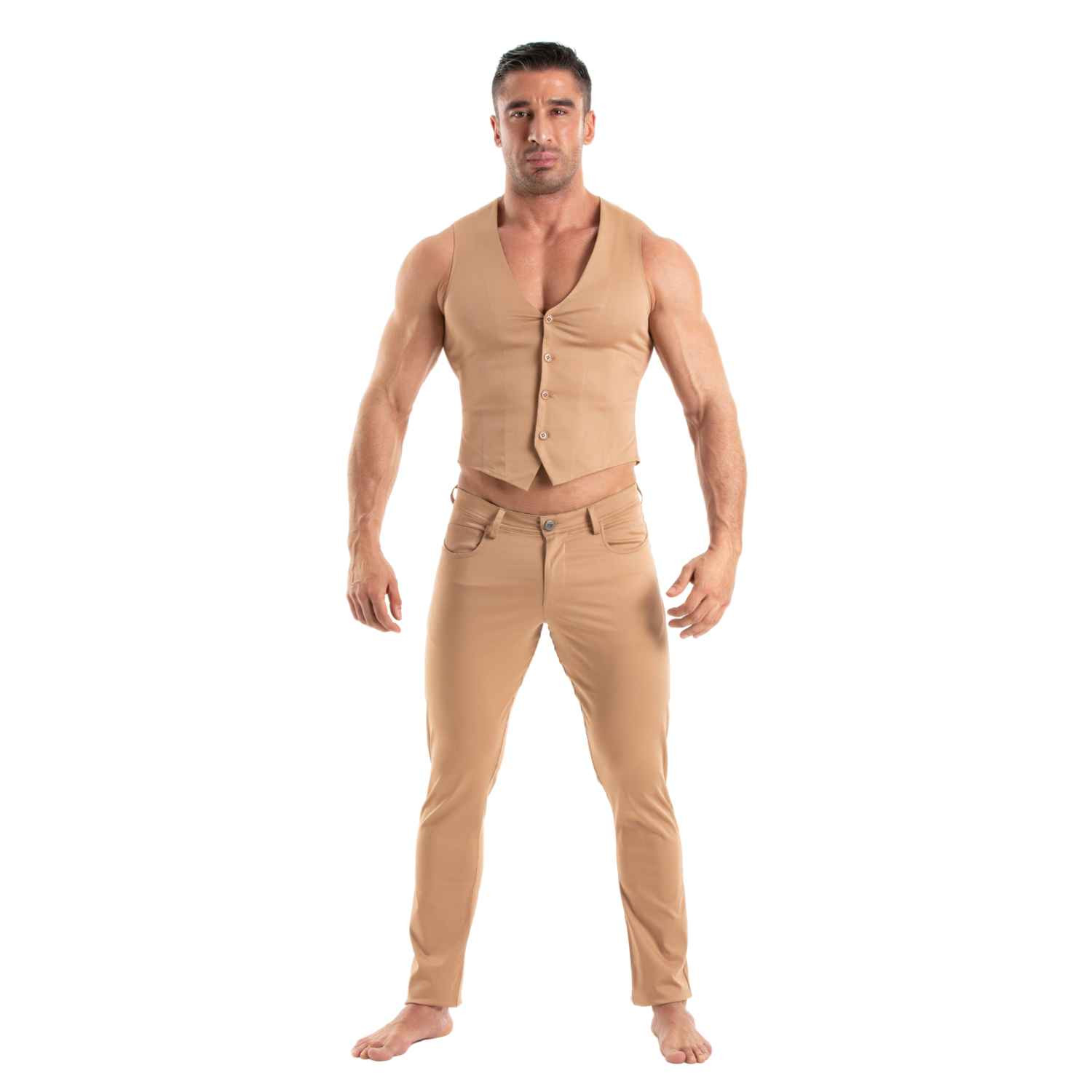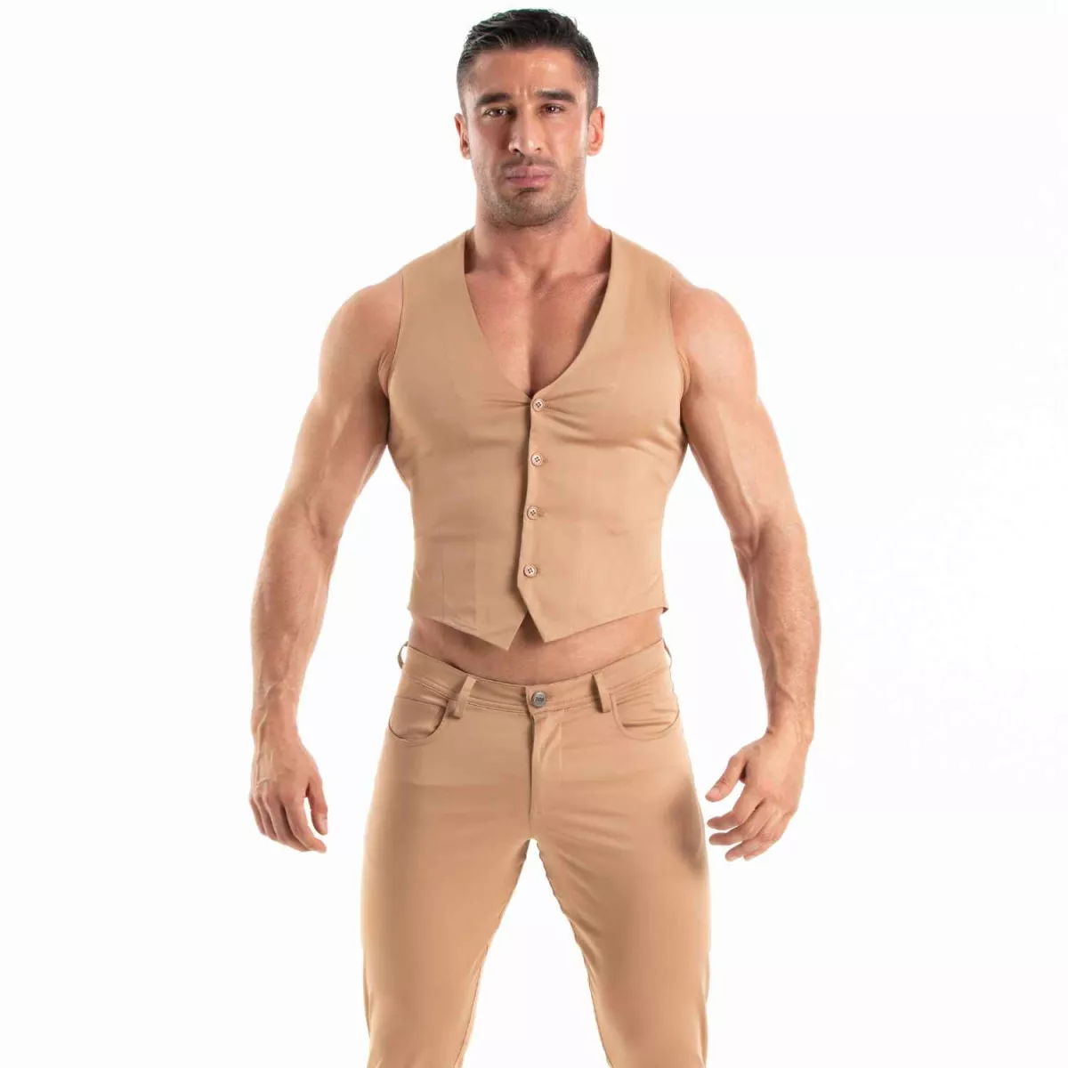 “Le gilet chino homme est un essentiel du vestiaire masculin. Son tissu stretch assure un confort absolu, et sa coupe ajustée sublime toutes les silhouettes. Elle se marie aussi bien avec un débardeurs homme qu’avec un sweat à capuche sans manches bambou beige. Une pièce polyvalente et stylée.”