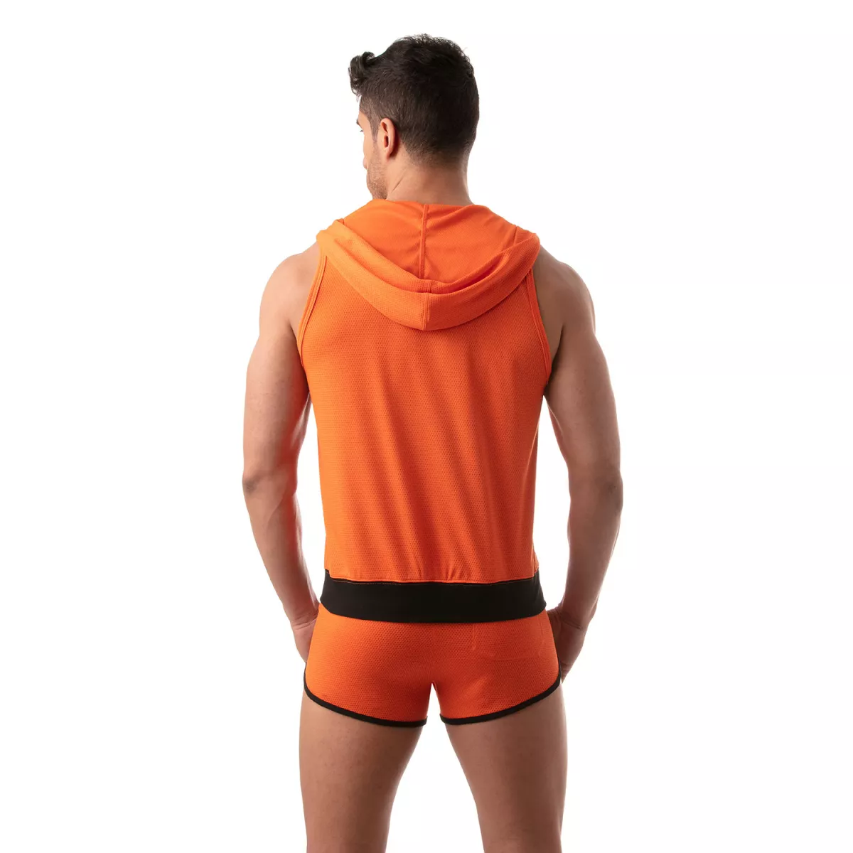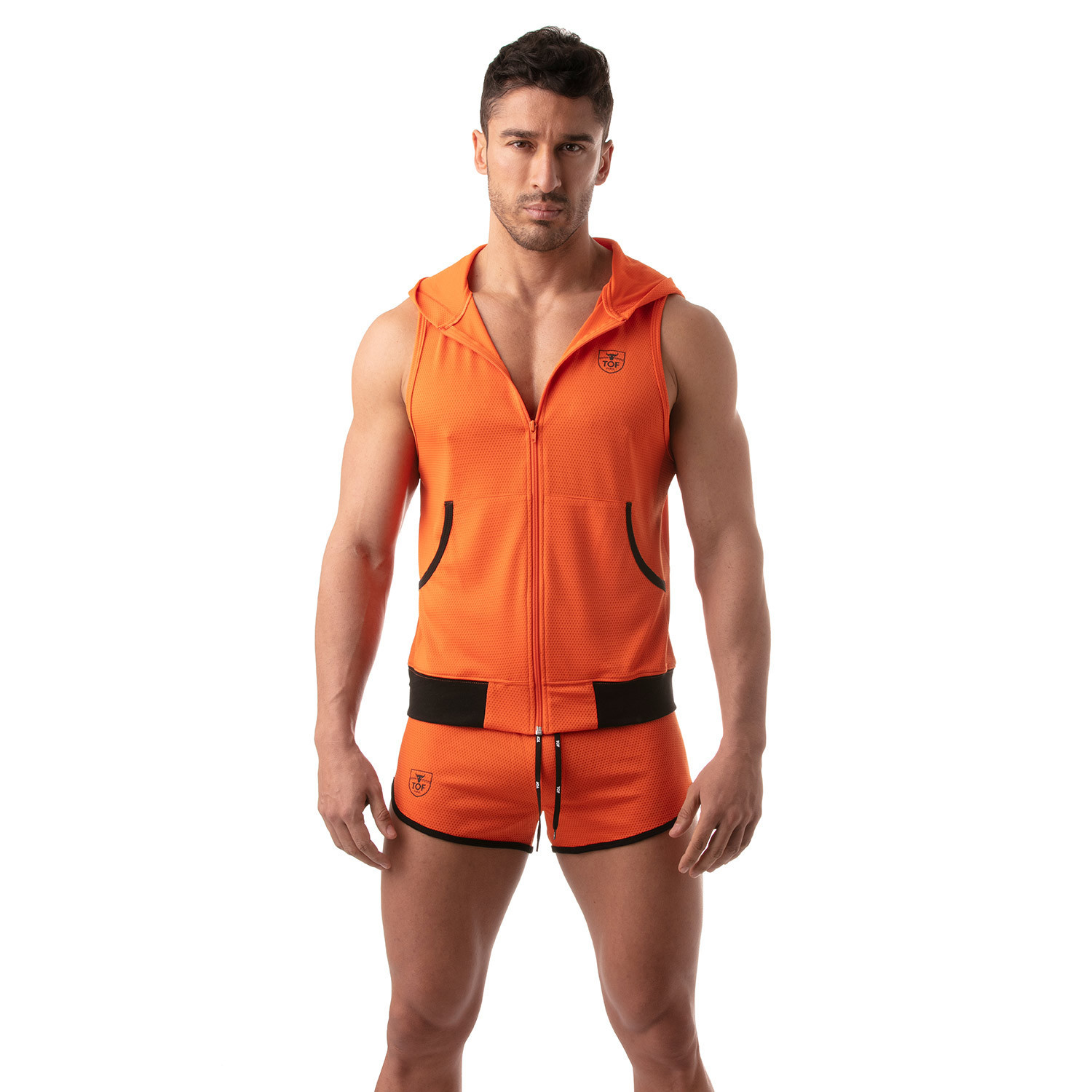 Veste à capuche sans manche ultra-léger en tissu microfibre polyester.